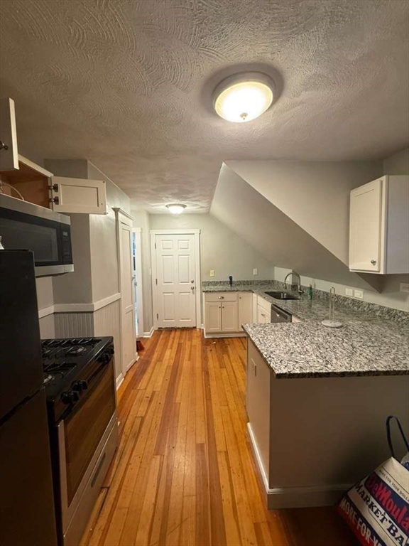 This renovated 3-bedroom apartment at 128 Empire St, Lynn, MA offers a bright and cozy layout with hardwood floors throughout and plenty of natural light. The unit features a modern, updated kitchen with granite countertops and contemporary cabinetry, generously sized bedrooms with good closet space, and tasteful neutral finishes that make it truly move-in ready. Architectural details and sloped ceilings add character while maintaining a clean, modern feel. One off-street parking spot is included, and the location offers easy access to local shops, public transportation, and major routes—making this a comfortable and convenient place to call home.