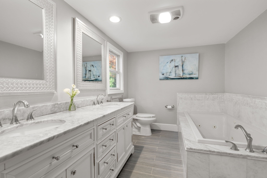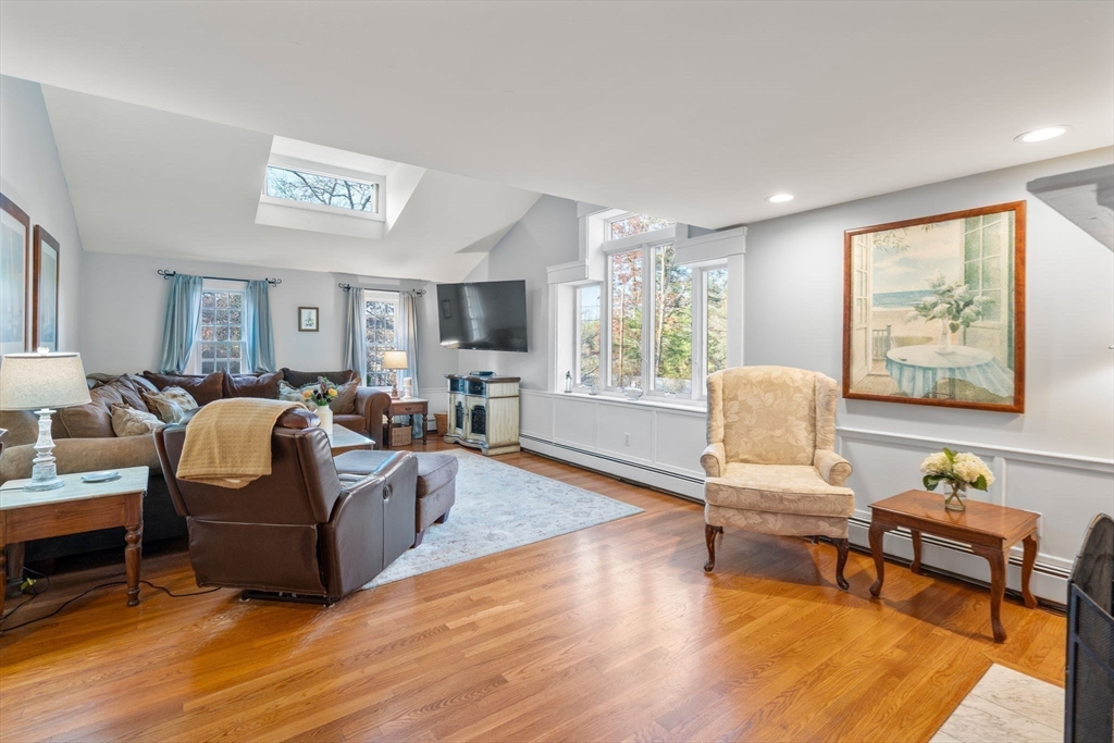 Turning onto Plantation Drive, you’ll immediately understand why this is one of the most desirable neighborhoods in Duxbury. This 4+ bedroom, 2.5-bath Colonial offers 2,600 sq ft of living space and is set on almost an acre of irrigated grounds. A grand foyer welcomes you into the home designed for both everyday comfort & memorable entertaining. The main level features a formal dining room, a sitting room, a private home office (or 1st-floor bedroom), a half bath, and a stunning kitchen and family room with hardwood floors, cathedral ceilings, and a wood-burning fireplace. A 2nd sitting area or sunroom opens to the private backyard retreat with multiple decks, a large patio, and an in-ground pool. Upstairs are 4 bedrooms and a full bath, including a spacious primary suite with a walk-in closet and a beautiful ensuite bath. Additional features include a partially finished basement, two-car garage, an expansive lawn, and more. Here’s your opportunity to enjoy coastal living in Duxbury!