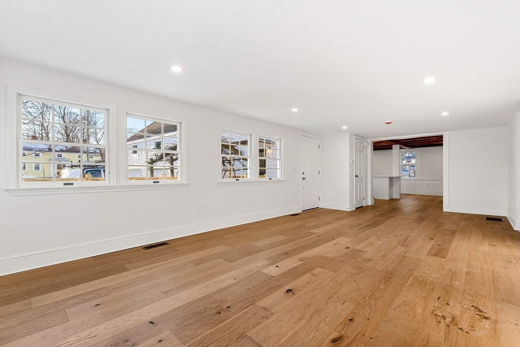 Welcome to Jewett Farms in the heart of Rowley. Unit One is a newly converted first-floor, single-level condo within the beautifully restored 1750 residence. Set on a shared 1.75-acre lot, the home features engineered hardwood floors and a light-filled entertainer’s kitchen anchored by a preserved original fireplace, quartz countertops, stainless appliances, and a welcoming breakfast bar. A spacious deck with a grapevine-covered arbor extends the living space outdoors. Enjoy two large bedrooms, a full bath, an attached two-car garage with loft, and a full basement for storage. With single-level living, generous outdoor space, and a walkable location near shops and dining, Unit One at Jewett Farms delivers rare convenience, charm, and modern comfort.