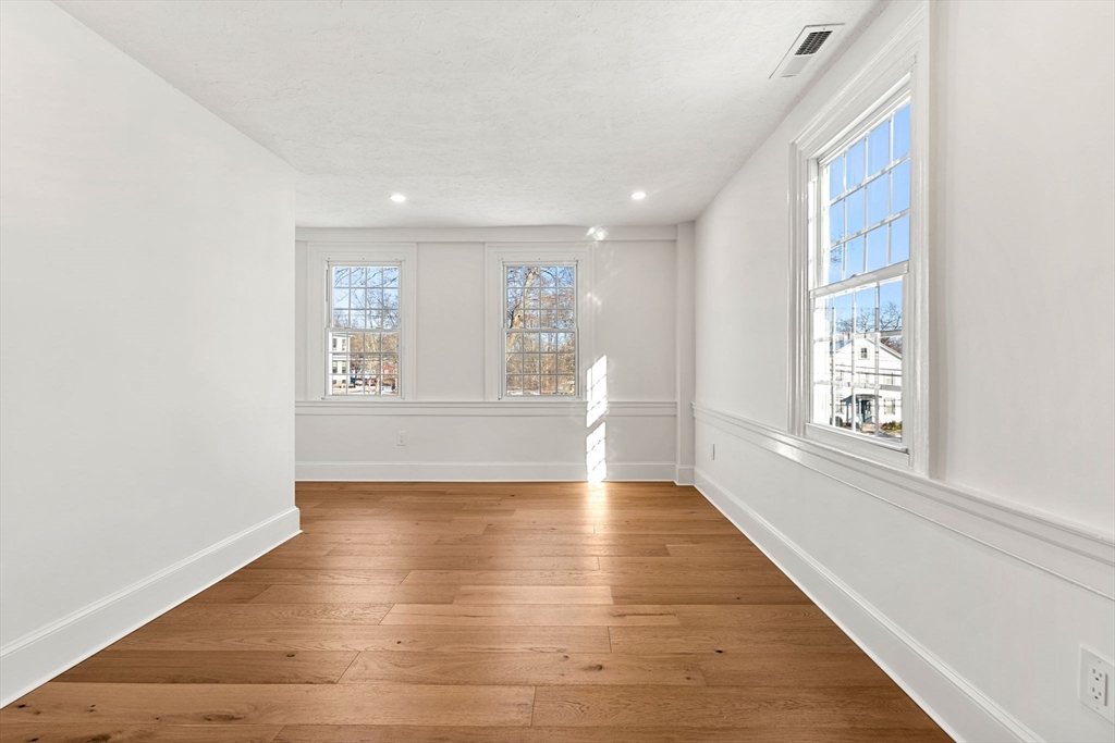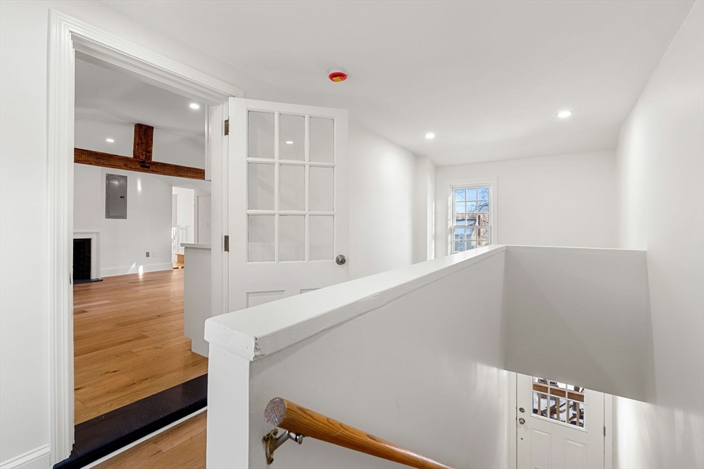 Welcome to Jewett Farms, a newly created residential offering in the heart of Rowley. Unit Two is a brand-new second-floor condo within the beautifully rebuilt 1750 residence, offering privacy, modern comfort, and a lovely view of downtown. The home features engineered hardwood floors throughout and a light-filled living area anchored by preserved original fireplaces that serve as charming architectural focal points. The new kitchen includes quartz countertops, stainless appliances, and generous storage. Two comfortable bedrooms and a stylish new full bath complete the layout. Enjoy the convenience of a dedicated one-car garage and access to the shared 1.75-acre lot. With all-new systems, fresh finishes, and a walkable location near shops and dining, Unit Two at Jewett Farms delivers turnkey living with historic character and modern appeal.