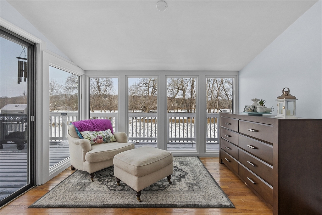 Don’t miss the opportunity to call this exceptional Bradford townhouse home. Set within a quiet, well-maintained 10-unit association, this residence offers picturesque views of the Merrimack River and ever-changing seasonal beauty. The move-in-ready home features an open floor plan with unobstructed water views enjoyed from both the main living area and the primary bedroom, enhancing the home’s tranquil setting. Offering two spacious bedrooms and 1.5 baths across more than 1,100 square feet of living space. A bonus four-season sunroom with walls of glass provides spectacular river views and opens to an attached deck ideal for relaxing or entertaining. Garage parking is complemented by ample additional storage and workshop space. Conveniently located near the Bradford Train Station and Routes 495, 213, and 93 making this an excellent commuter location.