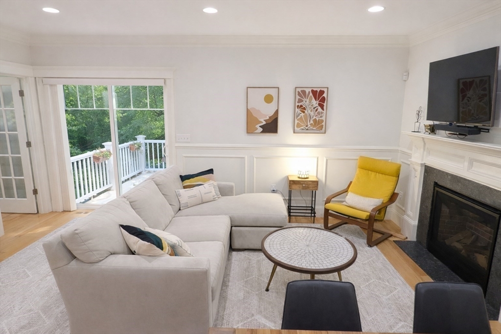 Spectacular townhouse in the desirable Newton Highlands neighborhood offering 3–4 bedrooms & 4 full bathrooms. Designed with luxury details and a layout perfect for modern living. This home features hardwood floors throughout and high-end finishes. The kitchen includes Thermador stainless steel appliances and quartz countertops, opening to a living room with a gas fireplace &custom paneling. A first-floor office/bedroom with full bath provides excellent flexibility. The second floor offers a spacious primary suite with walk-in closet & oversized shower, plus an additional bedroom, full bath, & laundry room. The finished lower level includes a bedroom and full bathroom, perfect for guests or extended living. Additional highlights include a private deck, professionally landscaped grounds, on-demand hot water, and plenty of parking with garage, carpot, & off-street spaces. Short walk to the Green Line T & Trader Joe’s. Easy access to Rt 9 and across from conservation area. Dont Miss it!