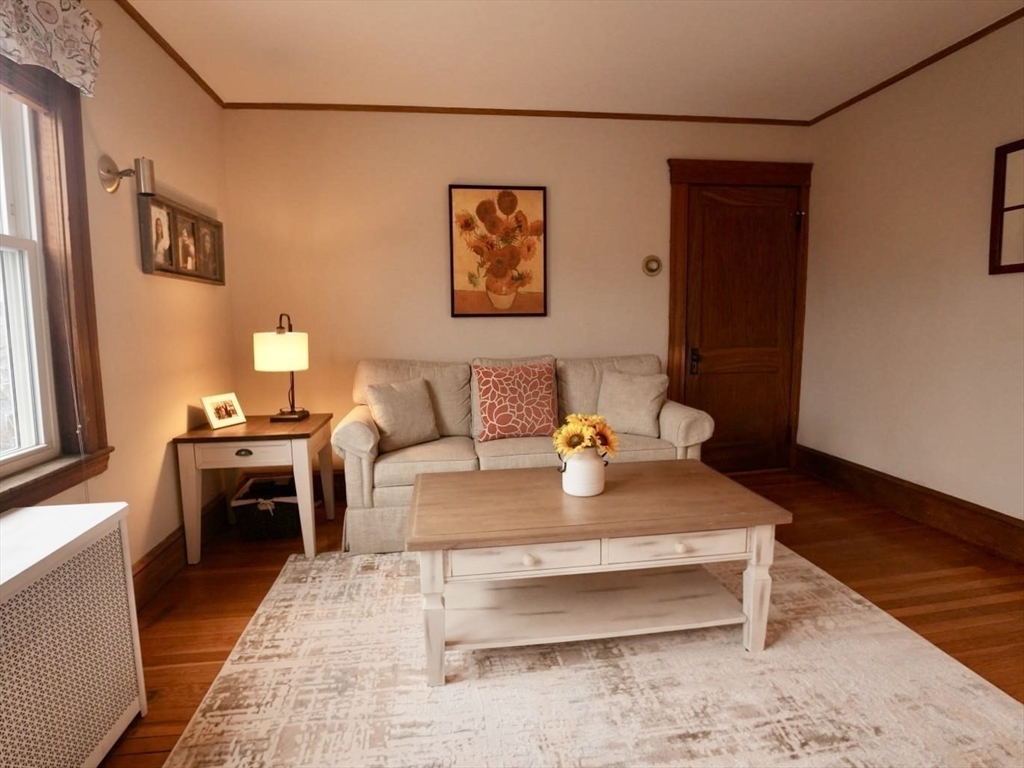 Beautifully updated, 2nd floor condo offering classic charm and modern convenience. This home features hardwood floors throughout, freshly painted interior and potential for future expansion in the walk-up 3rd floor. The sun-splashed living room opens to the dining room creating an inviting open floor plan ideal for everyday living and entertaining. The bright sunroom is separated with a French door and provides ideal work-from-home space. There are two spacious bedrooms plus a versatile 2nd office that has previously been used as a 3rd bedroom. The full bathroom has been nicely updated. The eat-in kitchen offers abundant cabinet storage and thoughtful upgrades including gorgeous quartz countertops. The rear deck overlooking the fenced backyard is exclusively for this unit. This pet-friendly home offers separate laundry and storage, garage parking, updated electrical and much more. Conveniently located near Waverley Square, Town Field, Belmont Center, schools & public transportation.