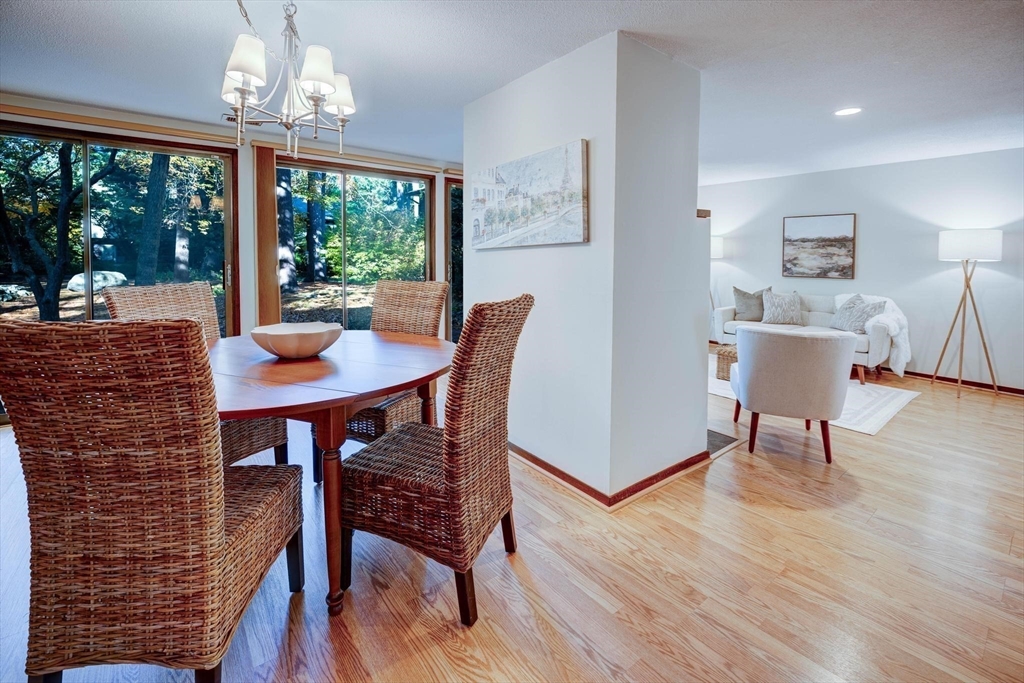 Spacious and beautifully updated 3-bedroom, 2.5-bath Townhome located in the highly desirable and well-managed Village of Nagog Woods. Features include a beautiful primary suite with en-suite bathroom featuring a tiled shower, a large kitchen featuring ample storage, built-in cabinetry, and a dedicated eat-in area. Sliding glass doors along the back wall open to a private patio overlooking professionally maintained grounds bloom with flowers each spring. Enjoy an impressive array of community amenities including a playground, tennis courts with winter bubble, swimming pools, electric vehicle charging stations, clubhouse, gym, organized community events, snow removal, landscaping, and trash service. Additional highlights include central A/C, high-efficiency forced hot air heating, generous attic storage, and two assigned parking spaces. Conveniently located near Nara Park, Nashoba Valley Ski & Tubing, golf courses, shopping, dining, entertainment, and commuter rail access.