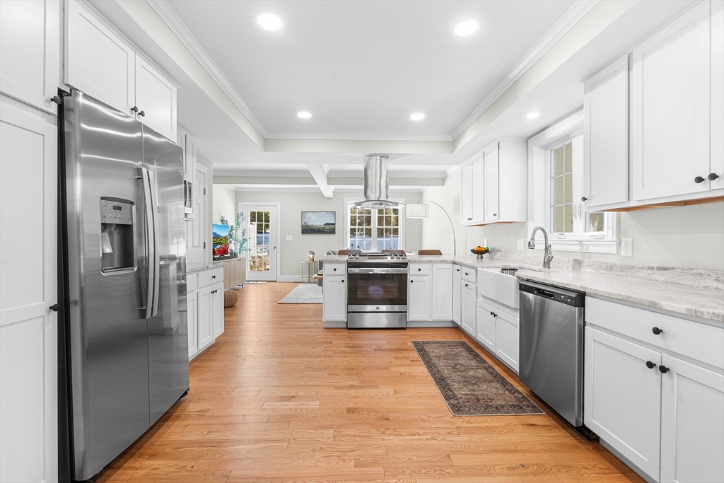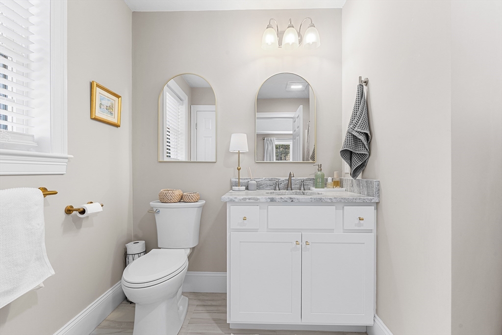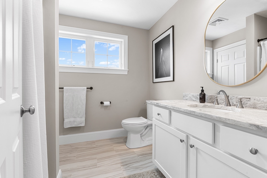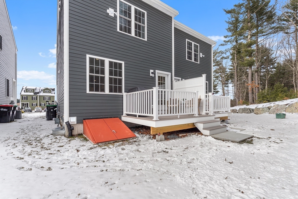 Welcome to Pondville Heights, where quality craftsmanship meets modern convenience. This stunning new construction townhouse offers three levels of sun-drenched living space designed for easy living. The open-concept main floor flows seamlessly from front to back, featuring rich hardwood flooring and a stylish living area with a propane fireplace and coffered ceiling. The gourmet kitchen is a chef’s dream, featuring striking leathered granite countertops. The upper levels host three spacious bedrooms, each with a private en-suite bathroom and upgraded Berber carpet.The primary suite has cathedral ceilings and dual closets. Upgrades include new light fixtures, knobs on cabinets, and hardware in bathrooms. Relax on the private rear deck or front porch. The home includes a tankless hot water heater and an EV charger in the assigned parking spot. 610 sqft basement awaits future expansion. Located near T-Station, Gillette, Patriots Place, and trails, offering the best of Norfolk!