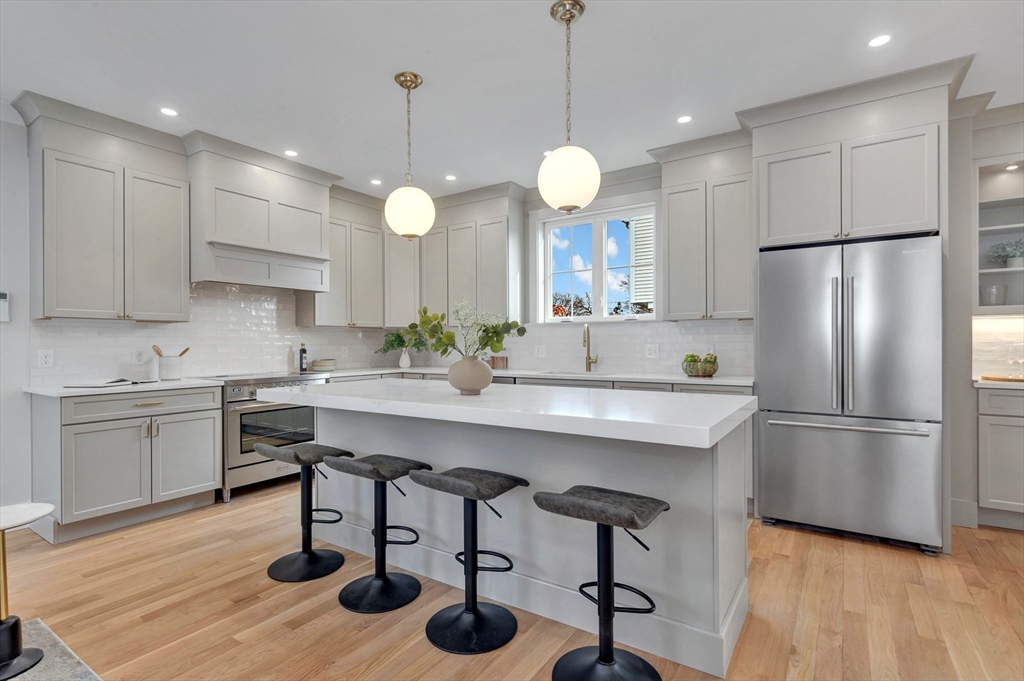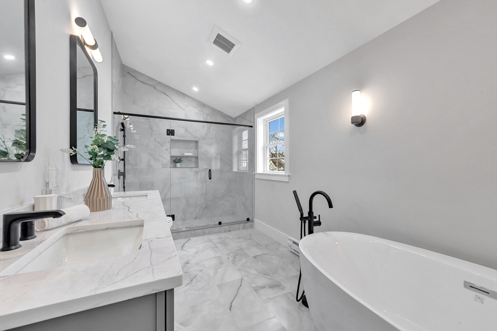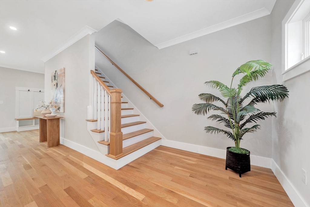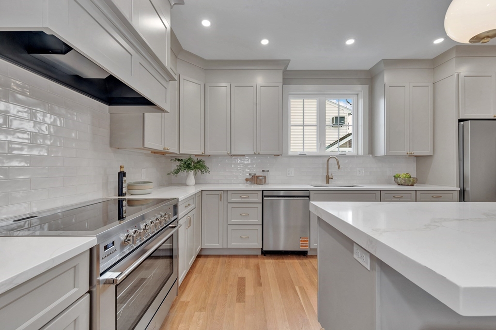 Waiting for that elusive East Arlington SINGLE family home? This unique offering delivers the ideal blend of location, new construction & energy efficiency! Built in 2025, the thoughtfully designed layout truly reflects how people live today. At the heart of the home, the kitchen steals the show w/quartz counters, an oversized island & tasteful brass accents, then seamlessly flows into the living room w/fireplace followed by the dining area, framed by glass doors leading to a deck & perfectly sized yard. On the mid-level are 4 spacious bedrooms, including an owner’s suite w/walk-in closet & luxurious bath, while the uppermost level offers an alternative bedroom suite. Live with ease thanks to the attached 2-car garage (EV charger ready), mud area entry, & a finished lower level - ideal for a future in-law, gym, playroom or teen hangout. All this in a VERY walkable location close to theaters, cafés & bakeries, the Bike Path, Alewife T, the 77 bus to Cambridge & Arl's top schools!