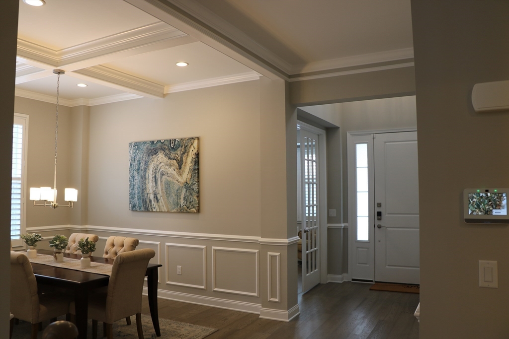 Located in Regency at Glen Ellen, a premier 55+ active adult community, this detached luxury home backs to conservation land, offering privacy and wooded views. The home features 3 bedrooms and 3 full baths, open-concept living, and a chef’s kitchen with luxury appliances. Additionally it boasts an office, laundry room, upper-level loft, and bonus room. Large windows and ceilings fill the home with natural light. The central kitchen showcases a generous island and opens to the vaulted living room, with a dramatic two-story custom shiplap fireplace. The first-floor primary suite offers a luxurious bathroom and expansive walk-in closet. Enjoy the outdoors with a covered screened porch and a newly installed patio. Extensive upgrades include engineered hardwood throughout, epoxy-coated garage floor, freshly painted walls, crown and wall moldings, coffered ceilings, built-in office shelving, and a whole-house generator! Residents enjoy resort-style amenities and a vibrant social calendar.