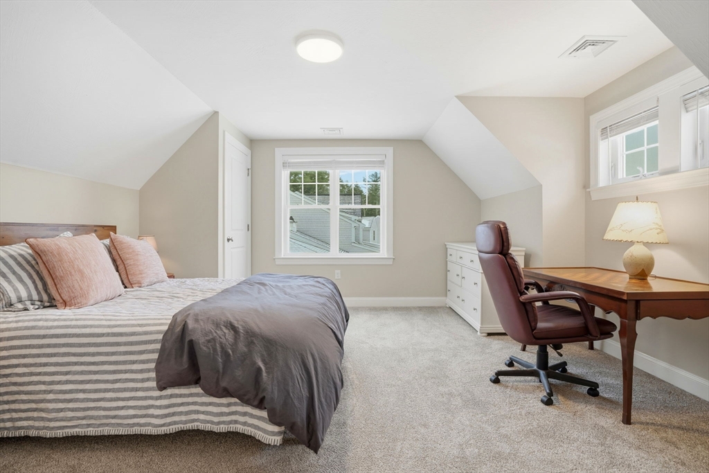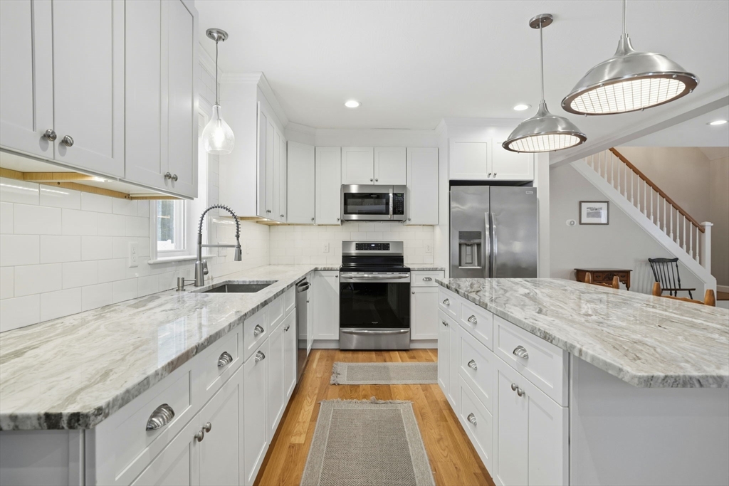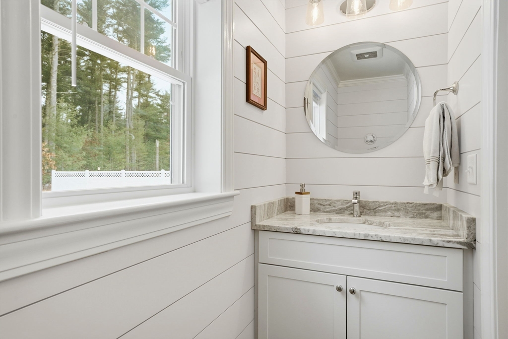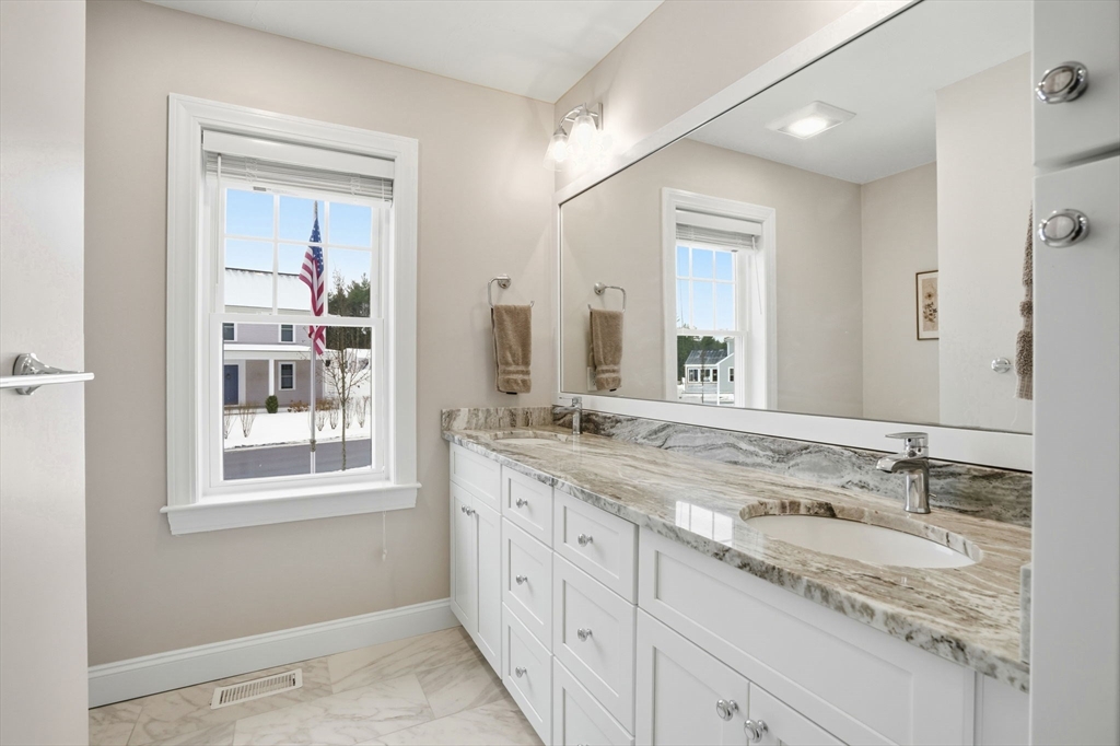 Meticulous 2023 construction on the corner lot of a private culdesac neighborhood. Enter the home to a sprawling open concept floorpan. Behold a gleaming white kitchen with stone countertops and stainless steel appliances including an upgraded convection/induction stove. Make your way to the living room with vaulted ceilings, gas fireplace, custom built-ins and slider exterior access. Down the hall is a half bath with convenient first floor laundry connections. Complete the first floor with a main bedroom/bathroom suite with walk in closet, dual vanities and tiled shower. Upstairs you will find two nicely sized bedrooms, a full bathroom, and an office currently being used as a guest bunk bedroom. Exit out the slider to a nicely sized backyard with privacy fencing and a crushed shells/stone patio. Full house Kohler generator, owned propane tank, paved side driveway, google nest doorbell and thermostats. Move right in to one of the newest Duxbury neighborhoods!
