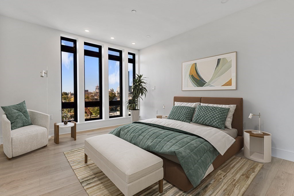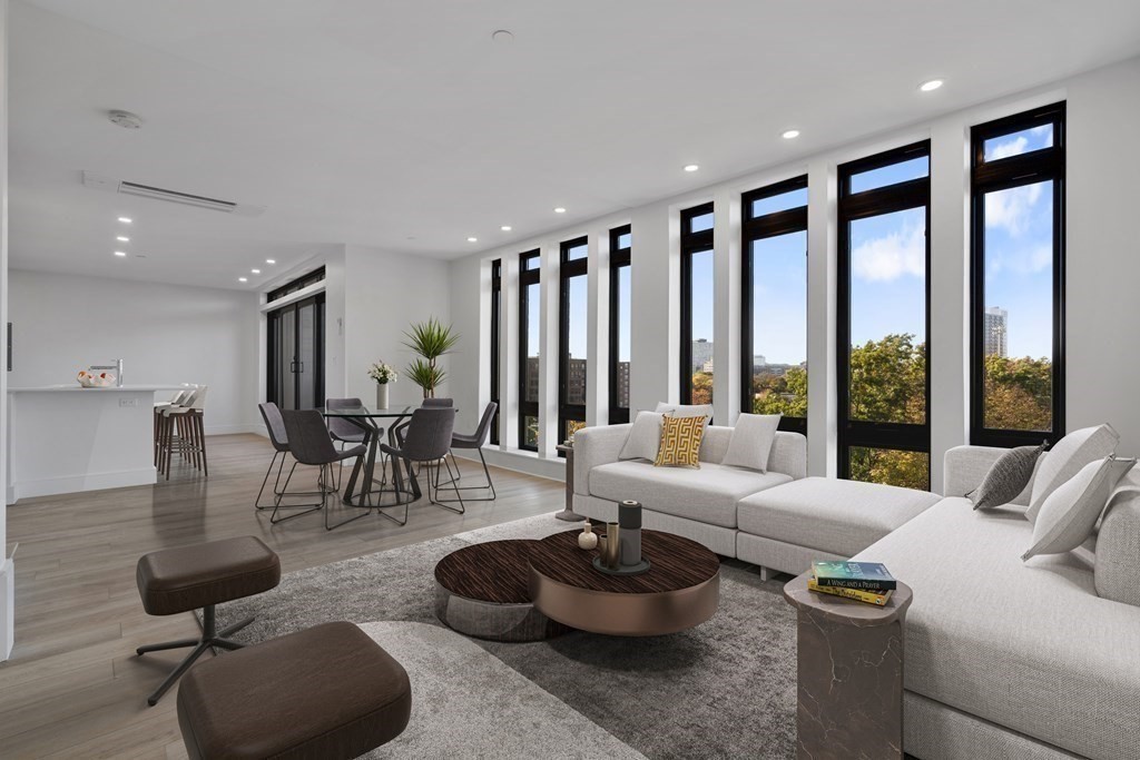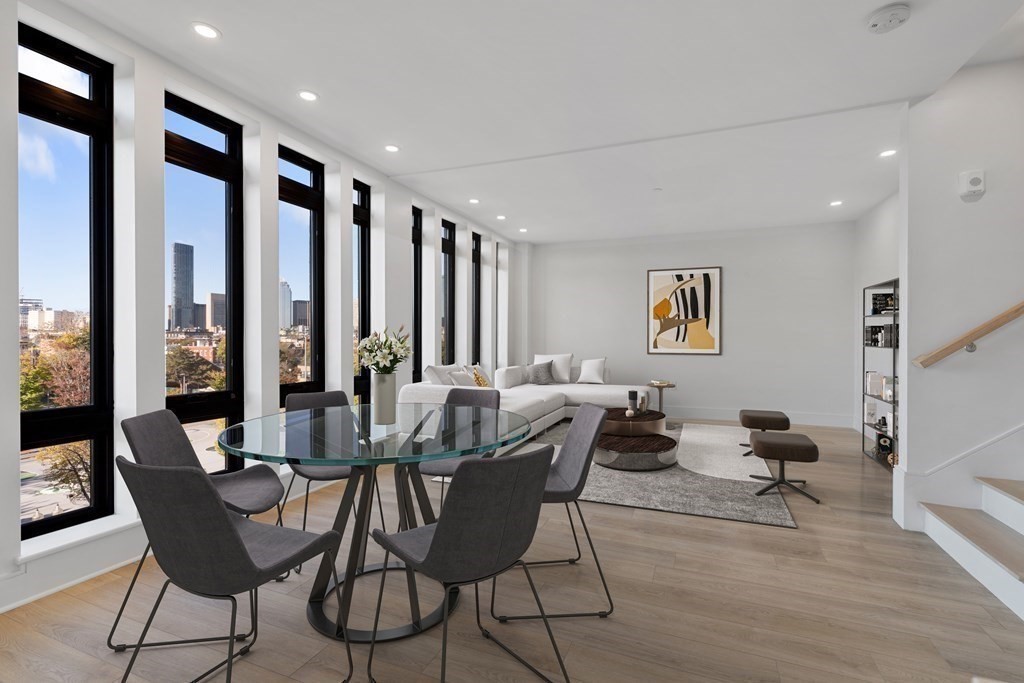Step from your kitchen onto a private balcony and take in breathtaking, unobstructed panoramic views of the Boston skyline. This spectacular penthouse duplex lives like a palace, offering two king-sized bedrooms, an expansive primary walk-in closet, double-vanity spa bath, in-unit laundry, deeded garage parking, and additional storage. Every box is checked. Style and comfort blend seamlessly with light wide-plank floors, luxurious marbled baths, and a striking two-tone kitchen featuring dark lower cabinetry, crisp white uppers, and integrated refrigerator and dishwasher panels. Ride the elevator to the rooftop deck for even more jaw-dropping skyline views. Just outside your door, enjoy the fully renovated Ramsey Park and walk to the very best of the South End. Pet-friendly and truly unforgettable. Come experience this exceptional home today.