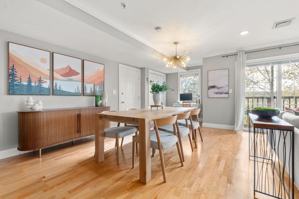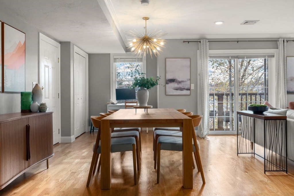 LOCATION, LOCATION, LOCATION! Welcome to THE VILLAGE AT FORGE POND, ideally situated in the HEART OF CANTON CENTER. This beautifully maintained 2-BEDROOM, 2-BATH CONDO offers scenic water views and a truly walkable lifestyle. Just steps to the CANTON CENTER COMMUTER RAIL and steps away from some of CANTON’S BEST RESTAURANTS, SHOPS, AND EVERYDAY AMENITIES, along with the library and Revere Park-plus easy highway access.Enjoy a SHORT COMMUTE TO BOSTON (APPROX. 25 MIN) and PROVIDENCE. Inside, the bright open-concept living and dining area features crown molding, recessed lighting, and HARDWOOD FLOORS. The kitchen offers STAINLESS STEEL APPLIANCES, a breakfast bar, and ample cabinetry. In-unit laundry, sliding glass doors lead to a private balcony overlooking FORGE POND AND THE NEPONSET RIVER.The primary suite includes a WALK-IN CLOSET and PRIVATE BATH. The CONDO FEE INCLUDES HEAT, HOT WATER, SEWER AND MORE. SELLER HAS PAID SPECIAL ASSESSMENT IN FULL FOR NEW ROOF.