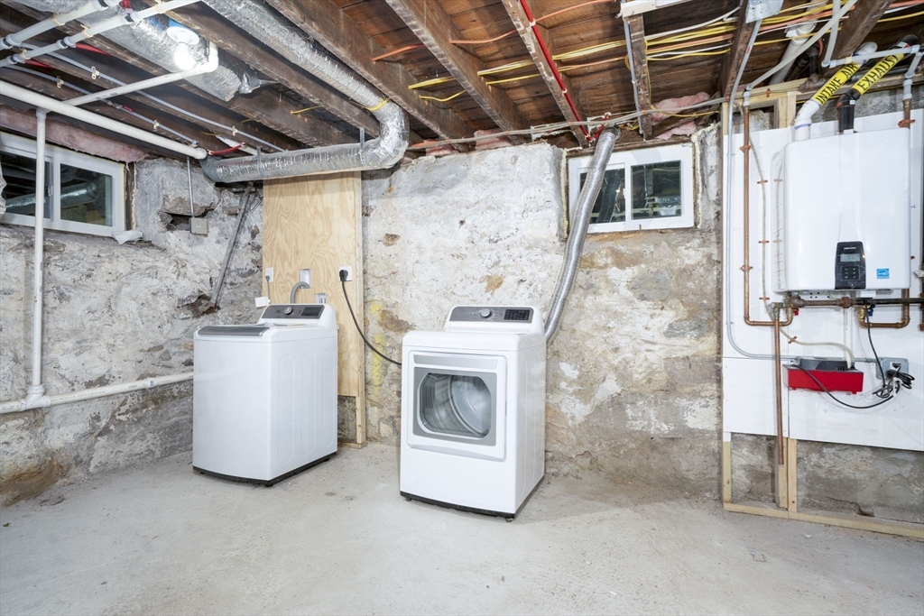 Own a piece of Milton history without sacrificing modern comfort! This Grand Colonial Revival, known as the Charles Wentworth House, was fully renovated in 2023, blending historic charm with modern luxury. A large front porch welcomes you into a move-in-ready home featuring high ceilings, original stained glass, and sun-filled rooms with new triple-pane windows for efficiency and quiet living. The modern kitchen offers white shaker cabinetry, quartz countertops, and a center island. The first floor includes a formal dining room, spacious living room, and a remodeled full bath with tiled shower. The second floor features four generously sized bedrooms and a remodeled full bath with tub. A finished walk-up attic offers flexible space for a fifth bedroom, home office, or family room. Major upgrades include all-new electrical and plumbing, gas forced hot-air heating, central A/C (2 units), and a Navien tankless hot water system. Corner lot with fenced yard, brick patio, and two-car garage.