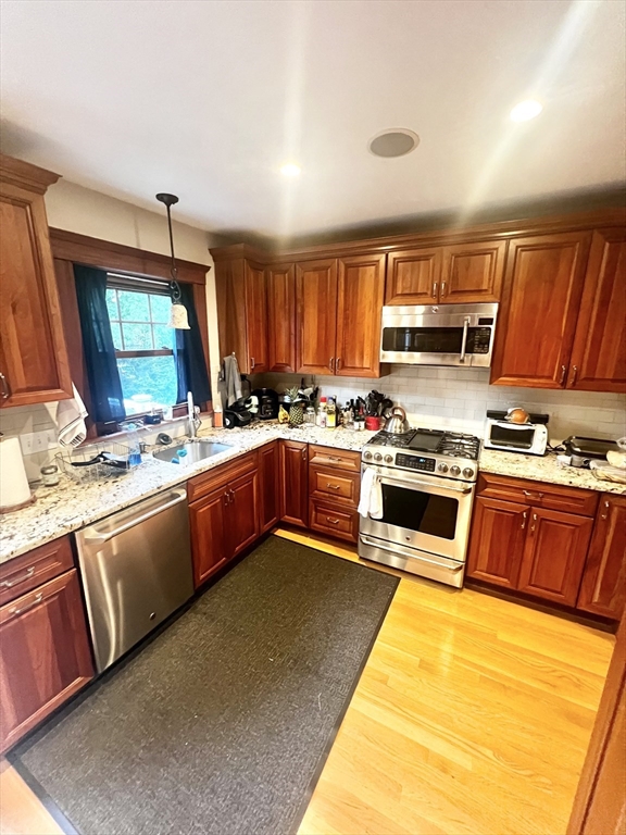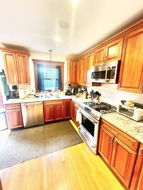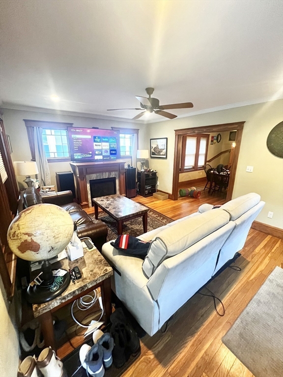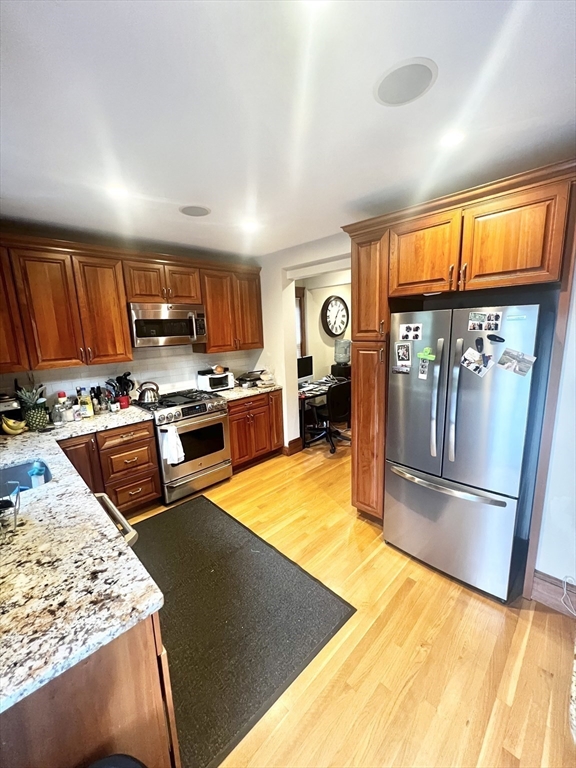 Discover this charming single-family home, ideally situated in the heart of everything. Featuring 3 sunlit bedrooms and 1.5 baths, this home boasts an updated kitchen, lovely hardwood floors, and original woodwork and trim. With three levels of living space, enjoy the additional room provided by the finished basement and the convenience of in-unit laundry and 2 zones controlling central ac/heat by Nest. Step outside to a private backyard with a large deck, perfect for entertaining, and a private driveway accommodating at least 4 cars. This home is within distance to BC and the new sports complex and offers a short commute to Saint Elizabeth's Hospital. Located just 0.6 miles from the BC, B Green Line and in close proximity to Storrow Drive and the Mass Pike, this home is directly across the street from Rogers Park. Don't miss this rare opportunity!