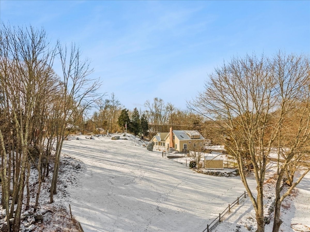 Warm and inviting farmhouse on an absolutely gorgeous and sprawling 1+ retreat acre lot with inground pool and sweeping views of the reservoir. This home has been lovingly maintained and renovated by one owner for decades and it shows! The chef's kitchen is the heartbeat of the home with stone countertops and wolf range. The kitchen opens to a sunny and spacious family room with private home office accessed via french doors. A living room with fireplace and formal dining room that could also be used as a guest space and full bathroom complete the first floor. Upstairs has potential to expand and features the primary bedroom with walk in closets, oversized cedar closet and two equitably-sized additional bedrooms with skylights and a family bath. The lower level functions as a laundry and rec room with Jotul wood stove. Enjoy summers by the pool, morning coffee on the deck, and autumn afternoons at the unique custom patio and firepit area. A special property to enjoy in all seasons!