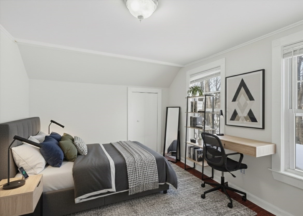 New year! New HOME! Welcome to this Colonial style home with a golden opportunity that you do not want to miss! The exterior offers an abundance of off street parking as well as a sizable lot with two storage sheds and a comfy backyard area. Upon entry, you are greeted with a cozy living room leading to an eat-in kitchen with good cabinet space. Adjacent to the kitchen is an enclosed porch that offers a potential additional space that you have been seeking to convert to a den, a reading area or a mudroom with your personal decor! The main level also offers an over-sized primary first-floor bedroom with a spacious closet. Upstairs completes the 2 additional bedrooms with a possibility to have double closets in each bedroom. The lower level provides access to the laundry area, storage space and a finished room perfect for your family room, rec room, game room or home office while providing walk out access to the backyard! The ONE is here, let’s make sure YOU make it yours today!