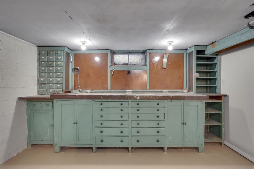 Welcome to this charming 5-room expandable Cape offering generously sized rooms in move-in condition. The home features a BRAND NEW KITCHEN with granite counter tops, huge breakfast bar and NEW STAINLESS STEEL APPLIANCES perfect for everyday living and entertaining. A large living room and spacious bedrooms with ample closets provide comfort and flexibility, along with a convenient & cozy home office nook ideal for remote work or study. The renovated bathroom adds modern style, while the semi-finished room in the basement offers great space for gaming & more. Plus you'll love the hobby area with a built in work bench. The unfinished 2nd floor provides excellent expansion possibilities for additional bedrooms or living space. Set on a dead-end street, this home also boasts a NEW ROOF, NEW WINDOWS, a 1-car detached garage and a rare, fenced & over-sized double lot with plenty of outdoor space & garden areas. Move-right in & enjoy the combined comfortable updates at an affordable price!
