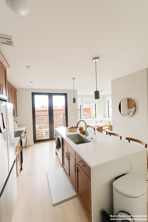 Heart of Southie New Build! Top Floor 2 bed, 2 full bathroom in a one-year young elevator building at the prime location of 400 W Broadway. All modern appliances and finishes throughout. 3 zones of remote controlled heat and A/C. This unit features an open-plan kitchen and living room with a private balcony, overlooking Broadway and downtown Boston. Both bedrooms fit a queen, one a little larger with an en suite. Building amenities include a gym, rentable storage space, and heated garage parking. Garage parking is an additional $350/month. Applications with pets are welcome. Available June 1st!