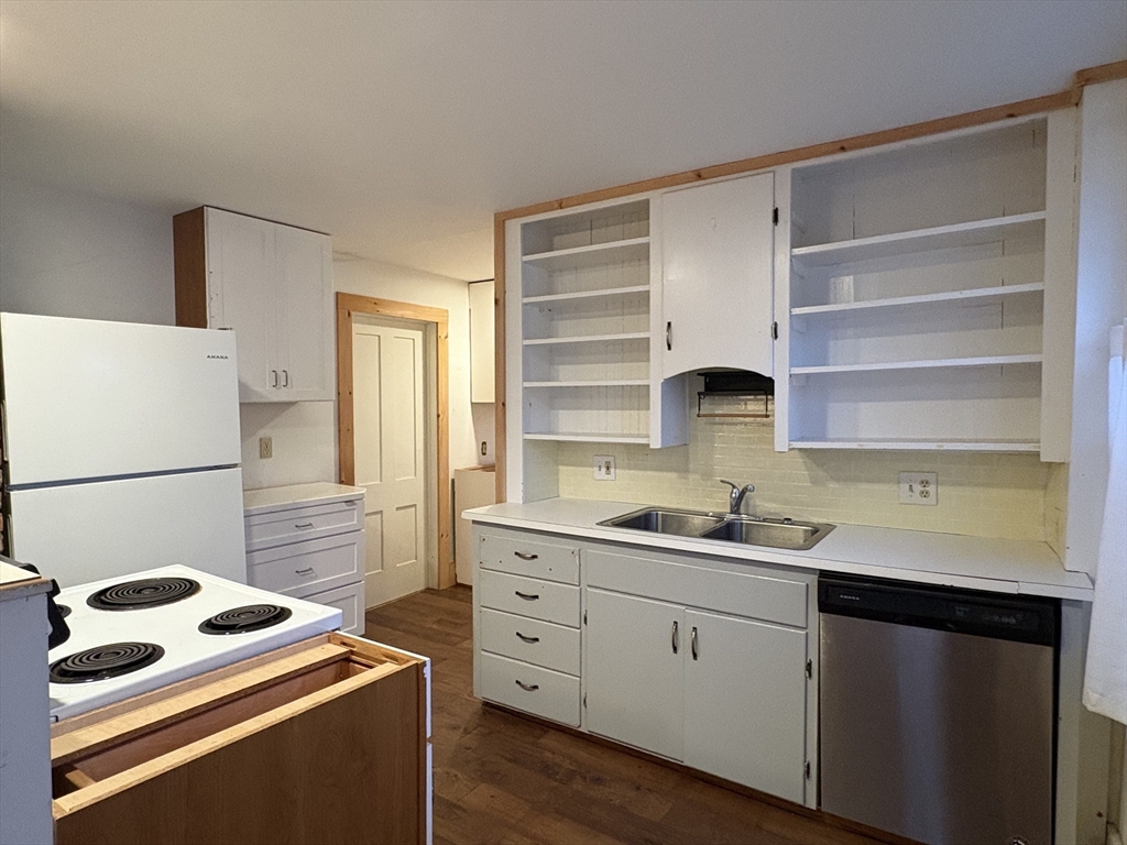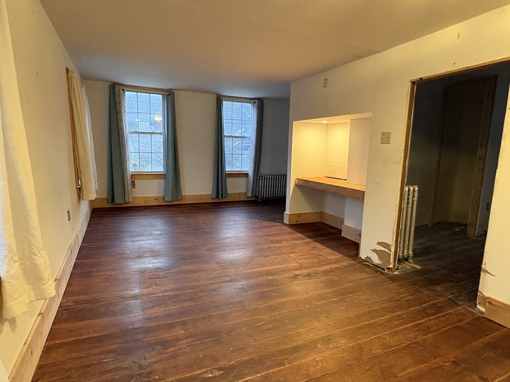 Perched on the banks of the Mill River in the charming village center of Williamsburg, you'll be delighted to discover this affordable 2 family home. Just steps from the Meekins Library, the Williamsburg Market, the post office and the elementary school, this in-town location can't be beat! Live in one unit and rent out the other... perhaps a short term rental? Both apartments feature 2 bedrooms, wood floors, and eat-in kitchens, both with dishwashers! The 1st floor unit is awaiting some cosmetic finishing touches, but the 2nd floor unit is move in ready. At just over 1/3 of an acre, the side yard is partially fenced and features a garden area and several fruit trees, along with river views. Updates include a new roof installed in 2019 and a newer boiler installed in 2017 (APO), plus replacement windows throughout. The oversized paved driveway provides ample parking. Ideally located just 15 minutes to Northampton Center and 34 minutes to Berkshire East. Don't miss this one!
