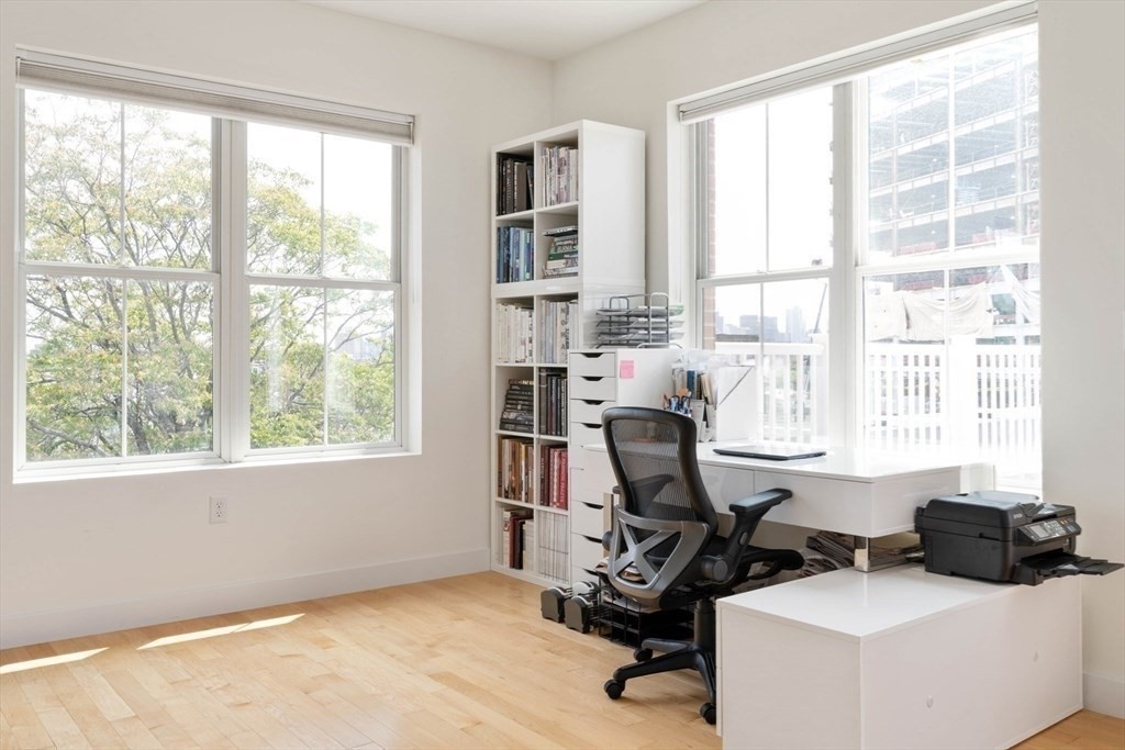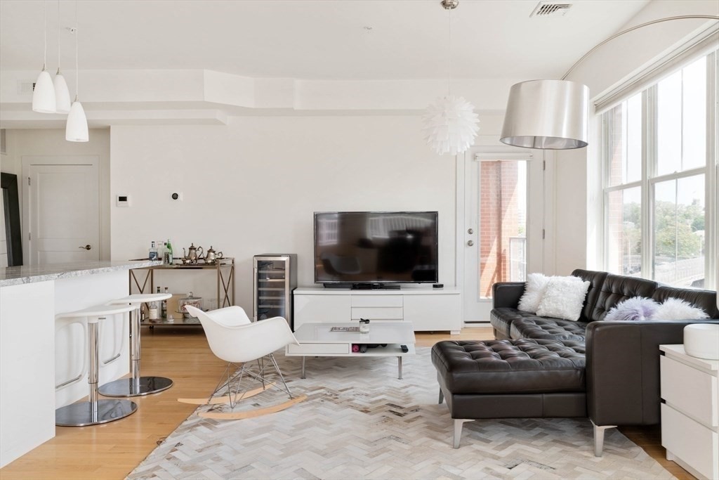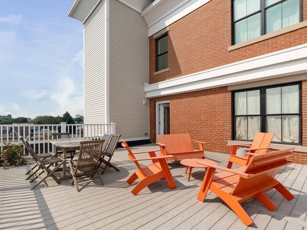Welcome home to Flatiron@Union Square, a boutique brick elevator building with garage parking! Gorgeous 2 bedroom/2 bath apartment has a 300 sf private deck plus a 2nd smaller one, in-unit laundry and bright maple floors. This beautiful apartment features plentiful cabinets with granite countertops and a breakfast bar. The stainless steel appliances include a gas stove, French door fridge with ice & water, microwave, and dishwasher. Sun-splashed living room and dining area have high ceilings and oversized windows. The spacious primary suite offers generous closet space and a crisp bathroom. Large second bedroom also has good closet space and access to a full bath. Additional amenities include central air, a NEST thermostat, 2 lockable storage closets in the hallway, and bike storage in the garage. Seconds to the new Green Line MBTA stop, and a few blocks to vibrant Union Square and everything it has to offer. Easy access to 93. Local responsive Landlord.