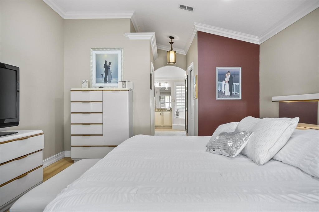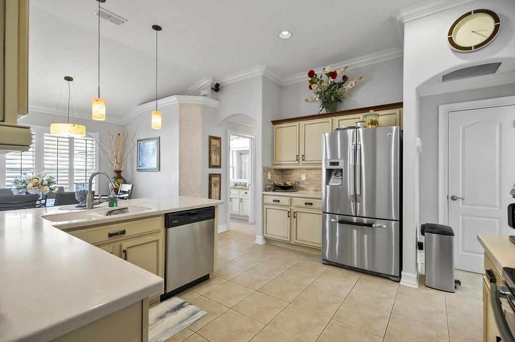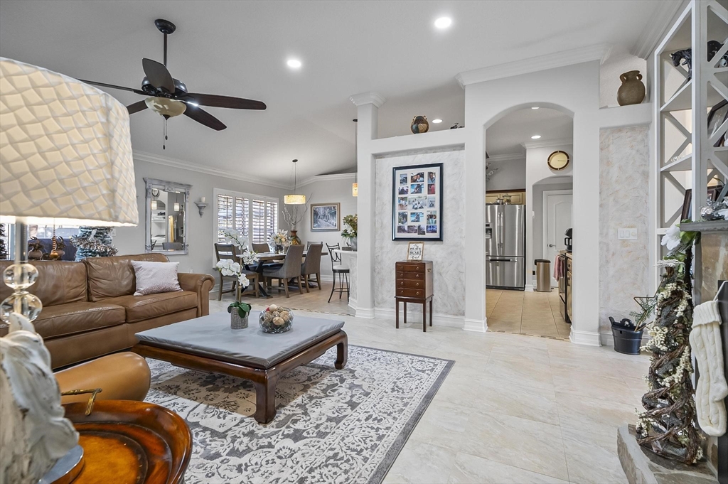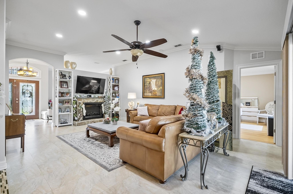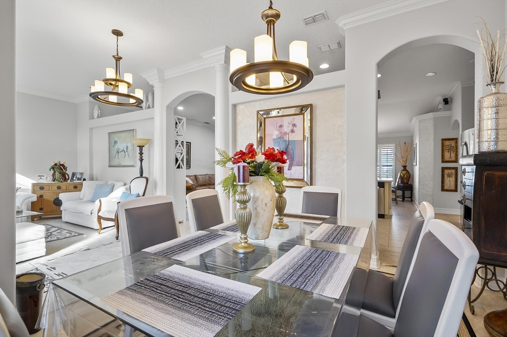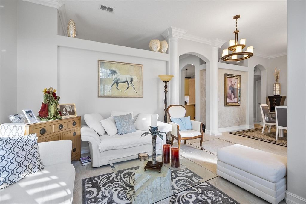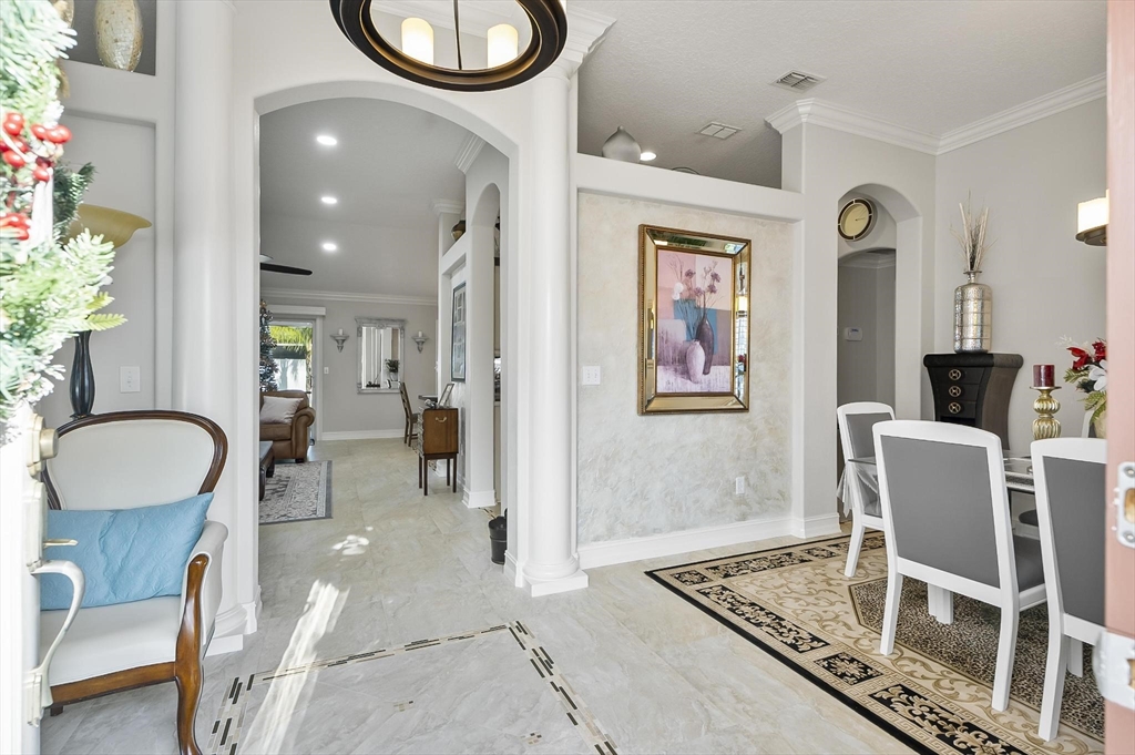 ***Roof 2025 - AC 2021 - Hot Water Heater 2021***Welcome to your dream home in beautiful Palm Coast! This meticulously maintained residence showcases exceptional craftsmanship and thoughtful upgrades throughout. Custom-designed entrance columns create a striking first impression, while elegant crown molding and high-end framework and trim add a refined architectural touch. The home features custom window casings, faux-finished walls, and tasteful accent paint that elevate each living space with warmth and character.Designed for both comfortable living and effortless entertaining, the property offers a private, spacious backyard oasis—ideal for relaxing or hosting friends and family. A standout feature is the detached guest suite located above the garage, providing comfortable accommodations for visitors while preserving privacy for all.