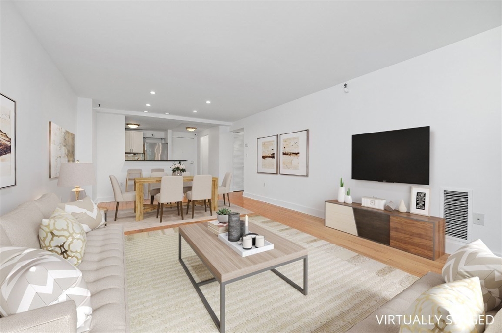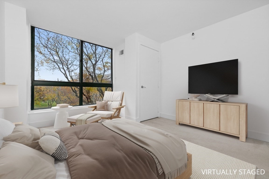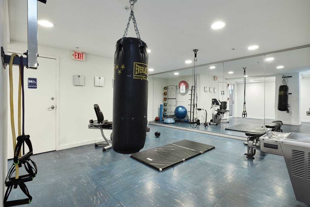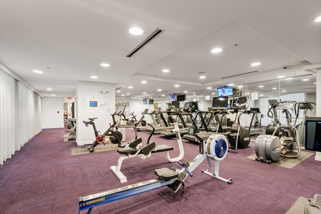 Charlestown Navy Yard – Parris Landing. Beautifully maintained 2-bedroom, 2-bath condominium with deeded garage parking in a full-service luxury complex. This single-level home features a galley kitchen with new white cabinetry, granite countertops, and breakfast bar. Floor-to-ceiling windows provide abundant natural light and Boston skyline/park views. Primary bedroom offers an en-suite bath with shower; second bedroom is ideal for guests or home office with adjacent full bath. Bonus room perfect for office, pantry/ storage. Customized closets, hardwood floors, updated lighting, and central air complete this home. Parris Landing amenities include 24-hour concierge, on-site professional management, outdoor pool & grilling area, fitness center wi/Peloton equipment, clubroom, business center, laundry facilities, electric vehicle charge stations & guest parking. Pet-friendly, non-smoking community. Convenient access to major highways, Water Shuttle to Boston, Partners Shuttle.