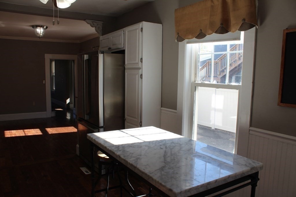 DELEADED UNIT!!!!Located at 226 California Street U:1, Newton, MA, this inviting home in fantastic Nonantum location awaits its next chapter. Close to shopping plaza with stop and shop, CVS, & Planet Fitness!! Walking distance to bike path and nature trails. Excellent commuter location! Ready to move in, this property offers a blend of historic charm and modern convenience. The kitchen features stone countertops that provide ample space for meal preparation, along with shaker cabinets adorned with crown molding that offer a touch of elegance. A high-end range oven promises exceptional cooking experiences, complemented by a wall chimney range hood, a high-end refrigerator, and a stylish backsplash. The large kitchen island serves as a central gathering point, while the kitchen bar offers a casual spot for dining or entertaining. Imagine relaxing in the sunroom, bathed in natural light, or enjoying a quiet moment on the porch, a perfect spot for morning coffee. The bathroom offers a spa
