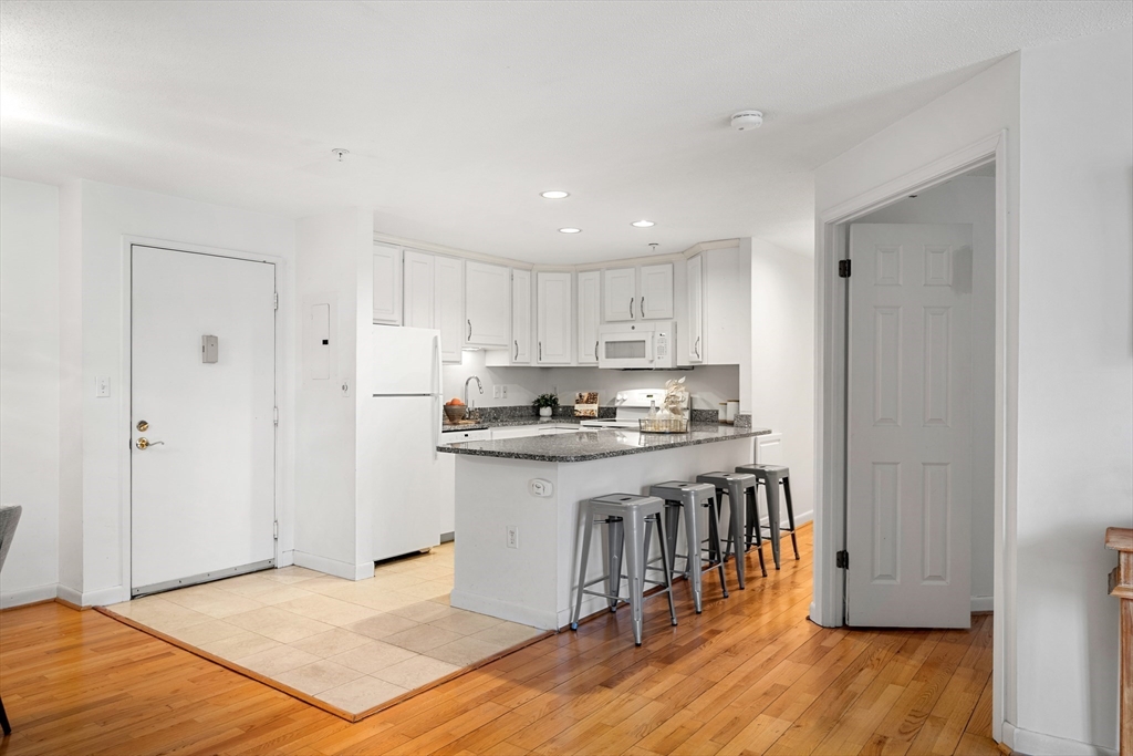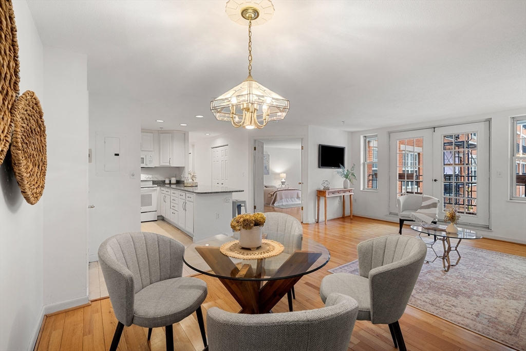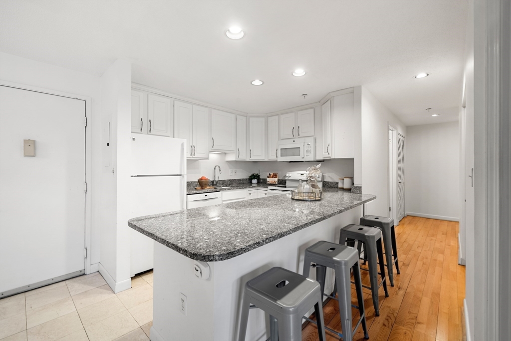 Natural light fills this elegant two bedroom, two bath residence. French doors open to a covered private balcony, and the kitchen features granite countertops and a refined breakfast bar. Conveniently placed in-unit laundry adds ease to everyday living. The primary suite offers a walk in closet and a custom dressing area, while the second bedroom provides direct balcony access. Enjoy beautifully landscaped courtyard views and an exceptional downtown Salem setting close to shops, restaurants, museums, Salem Common, the waterfront, the cinema and the commuter rail. The Essex offers an attached parking garage with sixth floor access and spaces available for purchase, along with a year round indoor pool, a gym, a library and more. The condo fee covers almost all utilities for predictable monthly costs, creating a luxurious and effortless lifestyle in the heart of this vibrant and historic city of Salem.......where modern comfort meets Salem's cultural charm!