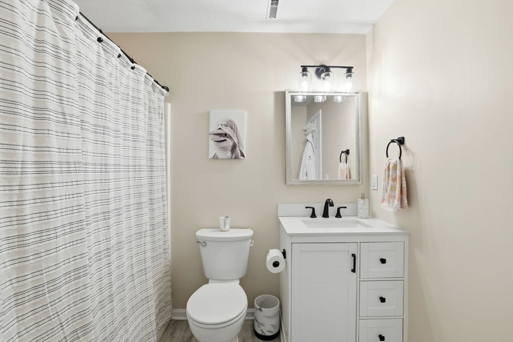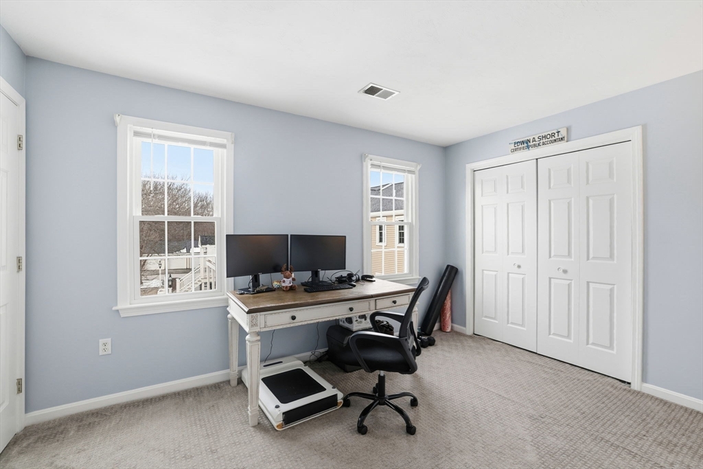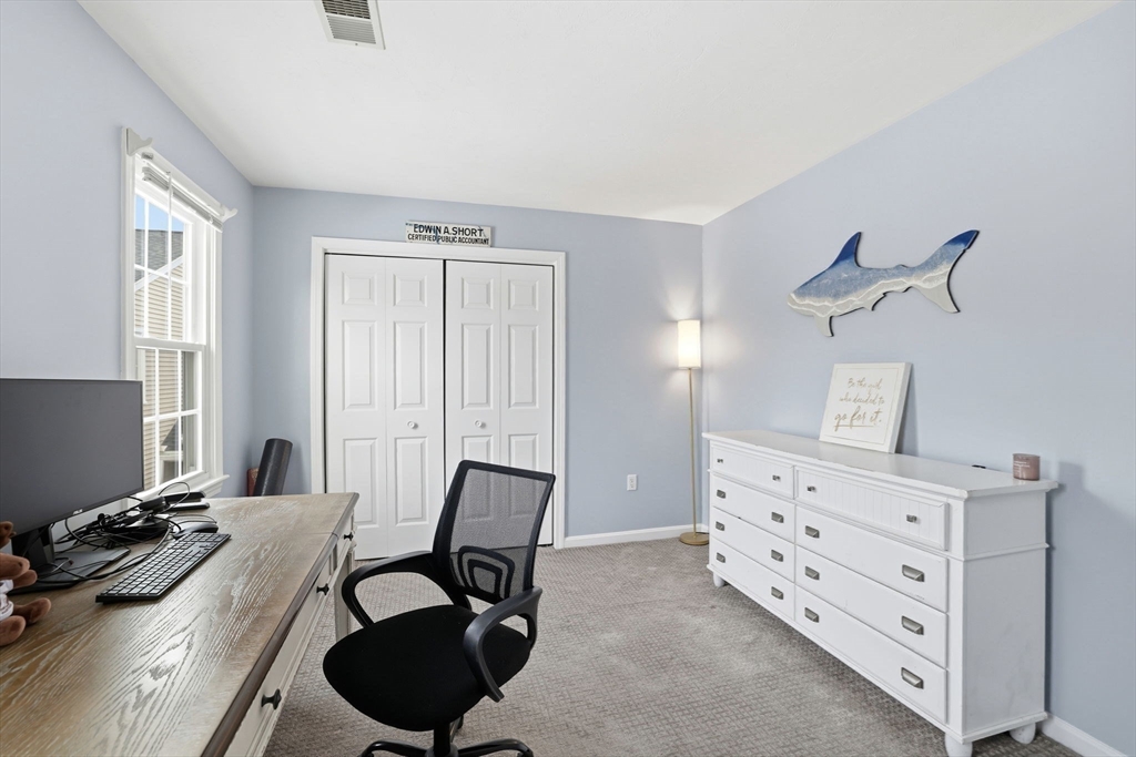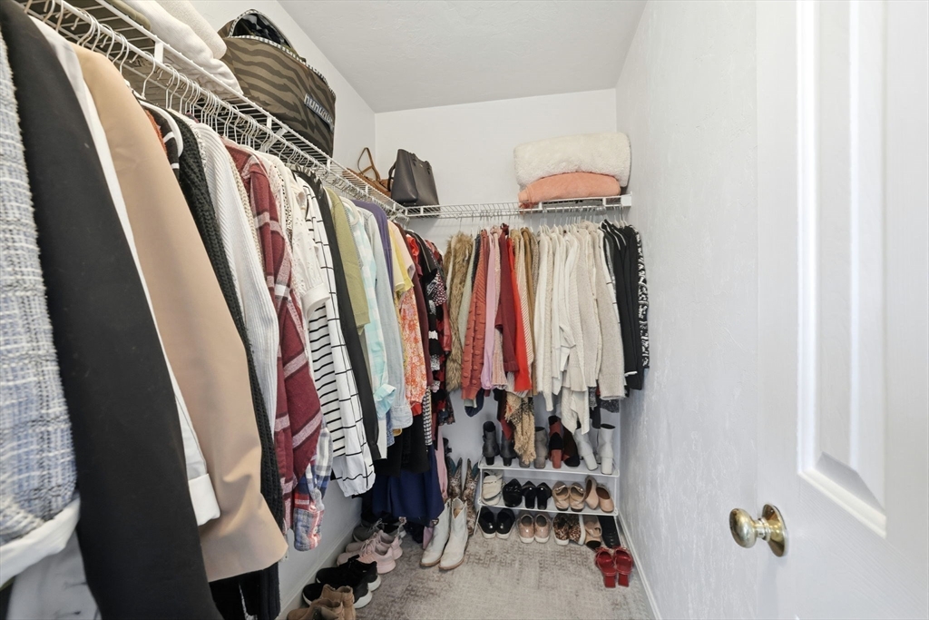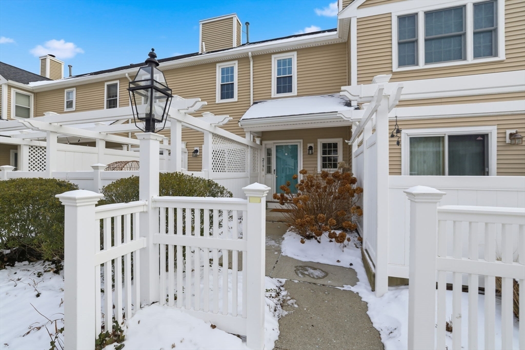 Welcome to Devon Wood, a peaceful community nestled among 350 acres of conservation land. Enter through your private entrance into this charming townhome-style condo. The unit features a spacious kitchen with freshly painted cabinets, upgraded countertops, and convenient in-unit laundry, along with half bath ideal for guests. The adjacent dining area is filled with natural light and offers serene views through a large picture window. The living room opens to a private patio through sliding glass doors perfect for relaxing or entertaining. Upstairs, the primary bedroom boasts a walk-in closet, cathedral ceiling, and an updated full bath. A second bedroom completes the upper level. Pull-down stairs provide easy access to the attic for additional storage. Enjoy all that Devon Wood has to offer, including a pool with lap lane, spa, tennis courts, clubhouse, walking trails, and community gardens. Conveniently located close to transportation and everyday amenities.