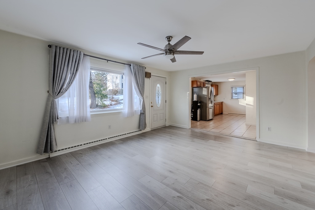 Immaculate and move-in ready, this elegant 2-bedroom ranch showcases a beautifully updated kitchen and bathroom, complemented by a one-car garage. An enclosed breezeway adds charm and functionality, while the finished basement provides versatile living space ideal for entertaining, a home office, or relaxation. Meticulously maintained throughout, with a quick closing available for added convenience.