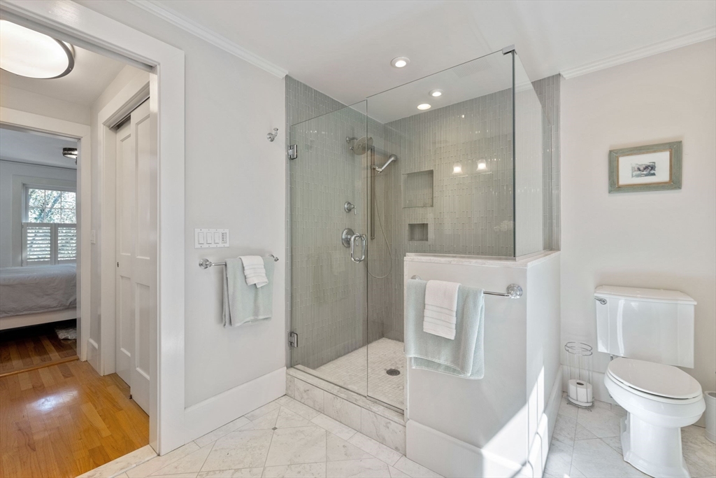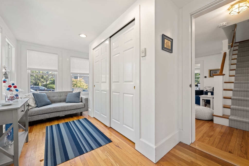 Impeccable hip-roof Colonial located in the highly desirable Clifton neighborhood, just steps from Glover School.The sun-filled first floor offers a warm and inviting living room, half bath, private office with custom built-ins,dining area & stunning, fully remodeled kitchen.Designed to impress,the kitchen features recessed lighting, custom cabinetry, quartz countertops, Thermador appliances, built-in Sonos sound system, and an island with a breakfast bar. The second floor offers a classic and functional layout with two generously sized bedrooms & full bath, plus spacious primary bedroom suite. The primary bath includes double closets, custom-tiled shower, and a double vanity. Outdoor living is equally impressive, with deck access directly from the kitchen, a large, flat, fully fenced backyard, an irrigation system, a storage shed, and a paved driveway. Unfinished basement which includes a large work bench w/vice, w/d , storage, deck, HVAC & exterior paint.