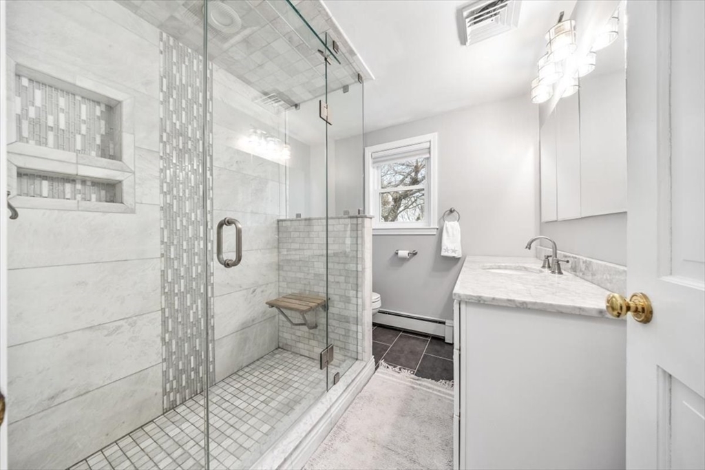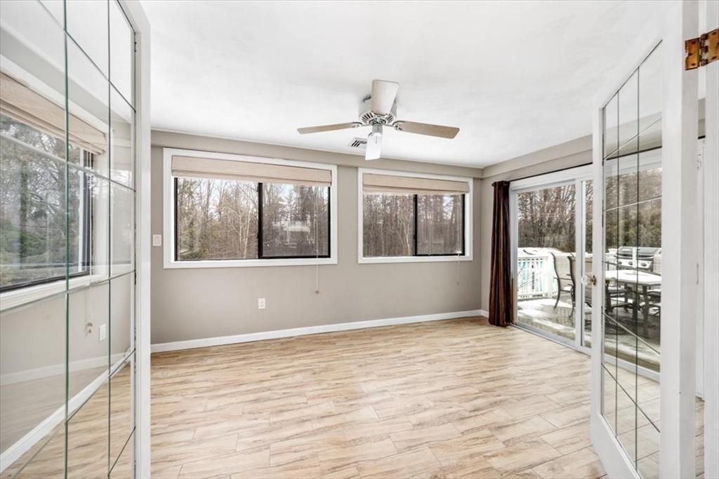 Don’t miss this lovely, expansive home in a quiet, sought-after Highlands neighborhood. With 5 BRs & 3 full baths spanning 3,500+ sqft, this home provides space & flexibility for everyday living, entertaining, & hosting guests. The open main level is designed for comfort & connection, featuring an updated eat-in kitchen w SS appliances, wine fridge, & lg island seating 5 that flows to a fireplaced living room. On warmer days, step from the dining area to sunroom & deck overlooking a private, level backyard with wooded views. Down the hall, you'll find 2 BRs, full bath, bonus room (w endless possibilities) leading to primary suite w deck access, updated bath, & 4th bedroom. The versatile lower level features a 2nd fireplaced space, laundry, storage, full bath, & 5th BR. Add’l rooms incl fully equipped gym, rec room, & home office w private entrance. Convenient to train, Rt 3, shopping, & walking distance to South Middle & Liberty Schools. Space, setting & location—this one has it all