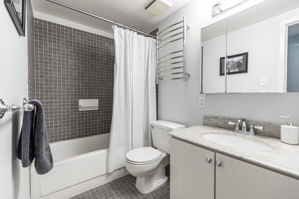 You truly can have it all in this beautifully updated one-bedroom residence with deeded garage parking, in-unit laundry, central air, and a wood-burning fireplace, ideally located in Charlestown’s coveted Gas Light District. Sunlight fills the open-concept layout, with serene views of the courtyard.The kitchen features granite countertops, stainless steel appliances, and a dedicated laundry/storage closet with a washer and dryer. Enter the spacious living area anchored by the fireplace,a bay window, custom shelving and storage cabinets.The generously sized bedroom comfortably accommodates a king size bed and offers excellent closet space.The Courtyard is a professionally managed elevator building with an exercise and common room. Enjoy the beautifully maintained outdoor courtyard with views of Bunker Hill Monument. An unbeatable location just steps to all that Charlestown has to offer, with an easy walk to the North End and quick access to major highways and public transportation.