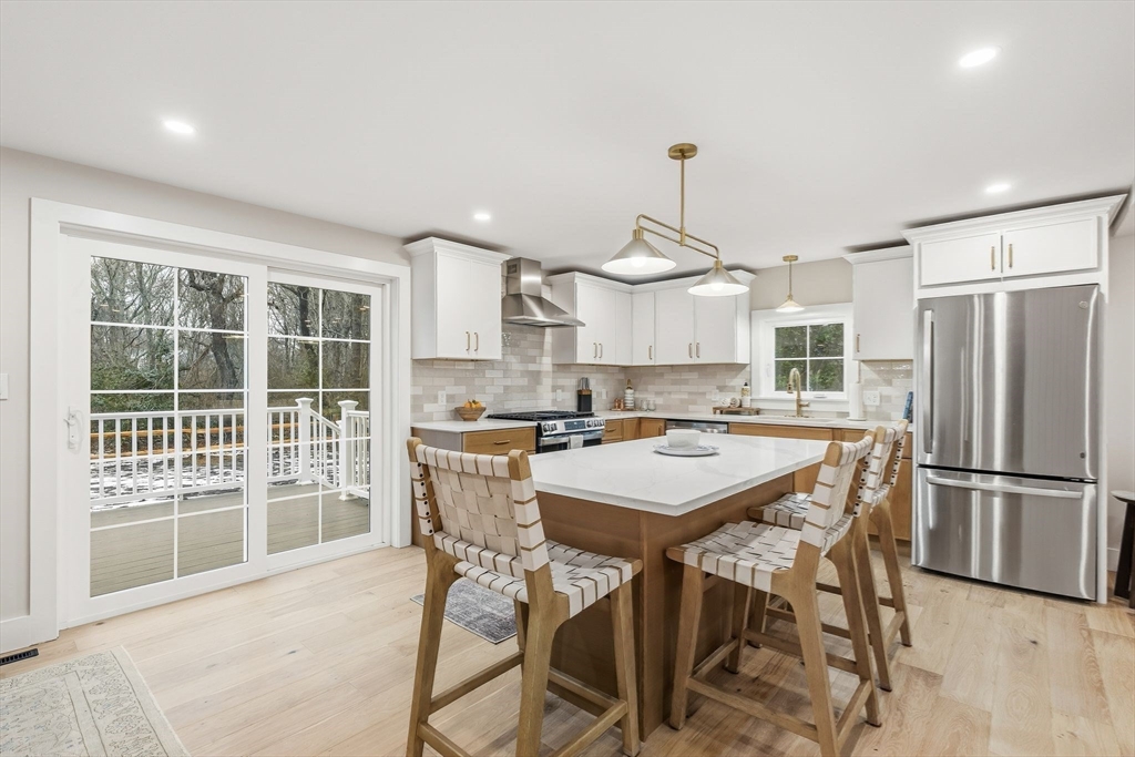 Completely transformed inside and out, this fully renovated, down-to-the-studs home blends modern style, quality craftsmanship, and exceptional flexibility in a peaceful Marstons Mills setting. Currently assessed as a 2-bedroom home, the interior features three finished rooms ideal for sleeping, office, or guest use, supported by a brand-new 3-bedroom septic system—a major value add. Exterior upgrades include new Paradigm windows, new siding, all new trim and fascia boards, new gutters, a recent roof (approx. 3 yrs), brand-new deck and front steps, graded driveway, split-rail fencing with new stockade panels, and updated exterior lighting, outlets, and spigots—and much more. Inside, enjoy a completely reimagined layout with all-new electrical and plumbing, new panels and breakers, a stunning new kitchen and baths with tile from Bellew Tile in West Yarmouth, engineered hardwood floors, new appliances, including a microwave drawer and vent hood. Schedule your private showing today!