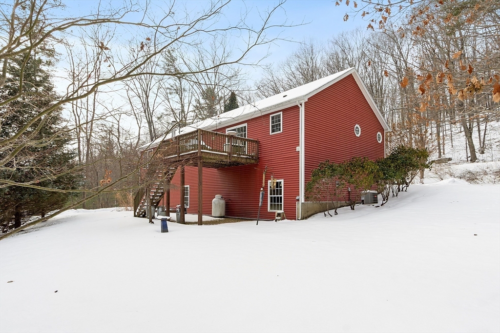 Welcome to this stunning 3-bedroom, 2 full bath ranch set on a private, wooded .96 lot in the quintessential town of Barre. Offering both space and seclusion, this home features a massive Trex deck - perfect for outdoor entertaining and a 2-car garage located underneath for added convenience. Inside, you'll find a spacious kitchen with a center island and abundant cabinetry, ideal for cooking and gatherings and a laundry room off kitchen. The home offers generously sized bedrooms, including a primary suite with a walk-in closet and a luxurious ensuite bath featuring a double vanity and relaxing hot tub and shower. A separate living room and dining room provide comfortable spaces for everyday living and hosting guests. Additional highlights include central air conditioning and a thoughtful layout that blends comfort, functionality and privacy - making this home a true retreat. Book a showing today.