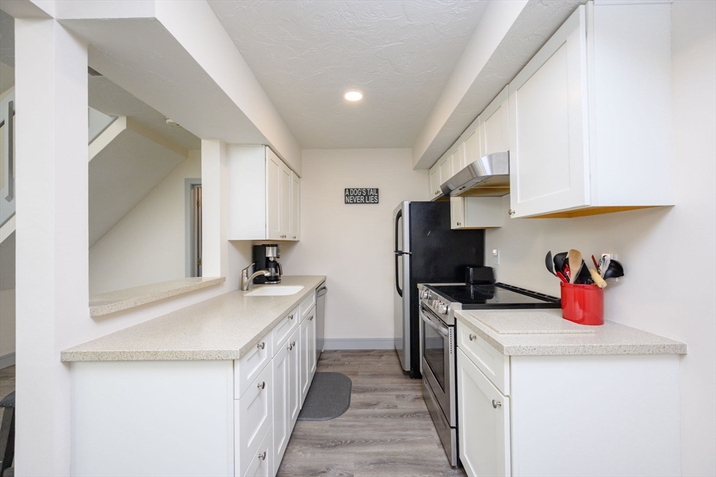 Welcome to Whitman Pond Village Condominium Association. This 2 bedroom townhome has an updated kitchen with white Shaker cabinets, quartz counters and stainless steel appliances appliances. The unit also features, new flooring, fresh paint, a working fireplace, central heat and A/C, a loft, vaulted ceilings, nice private yard space, storage and parking. Pet friendly association located in a private, tranquil setting near Whitman Pond, shopping and easy highway access. This a great unit for the first time home buyer or the downsizer looking for stress-free living. Open Houses Saturday and Sunday 1-2:30pm. Offers due Monday at 6pm.