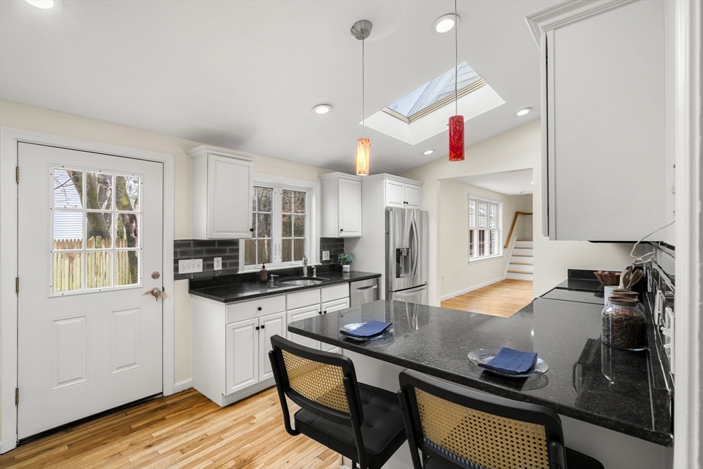 Welcome to 14 Mutton Lane — a conveniently located 5-bedroom, 2-bathroom home set adjacent to the Bradford Hawes Park. The property is just 1.4 miles from Weymouth High School, and only a 5-minute drive to the Derby Street Shops and major highway access. This home features a long driveway, one-car garage, and a fully fenced in backyard. The front of the house offers beautiful exposed wood beams and timeless charm, while an early-2000s addition provides extra living space with modern finishes. Recent cosmetic renovations include new hardwood flooring, fresh interior paint, and a brand-new first floor bathroom. This gorgeous home blends historic character with modern updates and is truly move-in ready for its new owners.