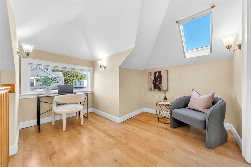 Sun-drenched 3-bedroom, 2.5-bath condo nestled on a quiet street in prime West Cambridge. The main level offers an inviting open layout with a custom kitchen featuring breakfast bar and wine fridge, seamlessly connecting to the dining area and living room with fireplace, bay windows, and hardwood floors. A sunny balcony provides the perfect spot for morning coffee or gatherings with friends. Two bedrooms and a full bath complete this floor. Upstairs, the primary suite feels like a private retreat with a fireplace, spa-like bath, and a sitting area ideal for a home office or reading nook. The walk-out lower level includes a private bedroom suite, perfect for guests or extended family. Enjoy one off-street parking space, shared backyard, and the peace of a residential neighborhood while being moments from Huron Village, Fresh Pond, Harvard and Porter Squares, and an array of cafés, shops, and public transit. A warm and versatile home ready to welcome its next owner.
