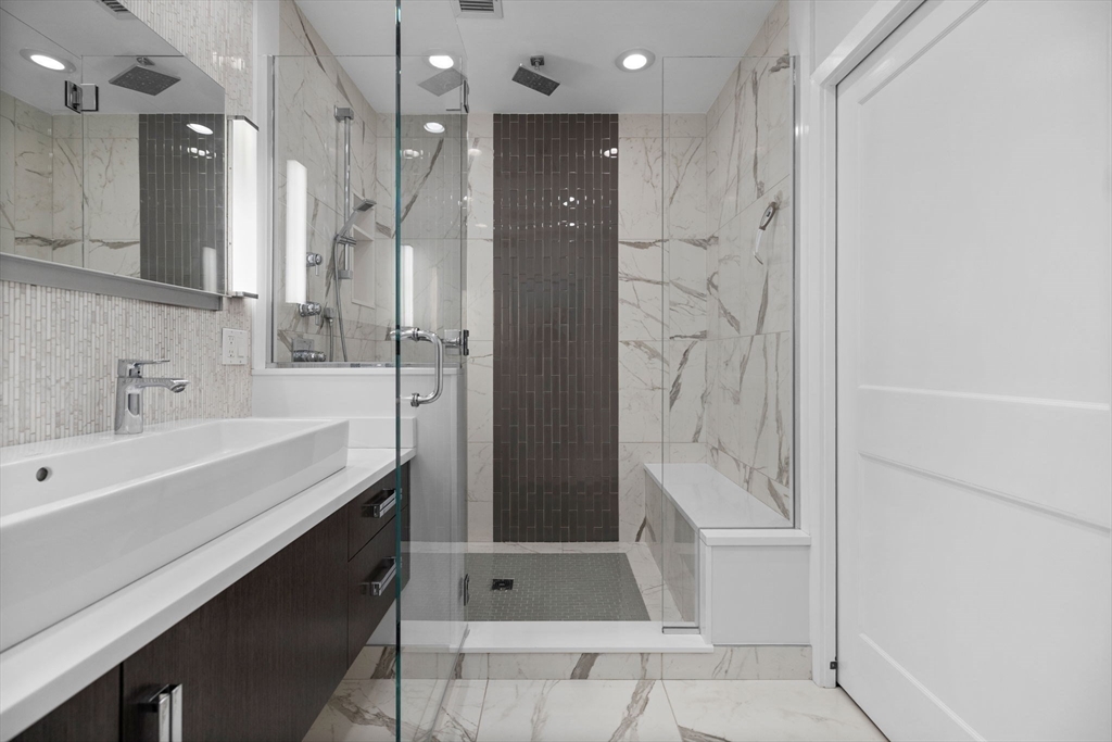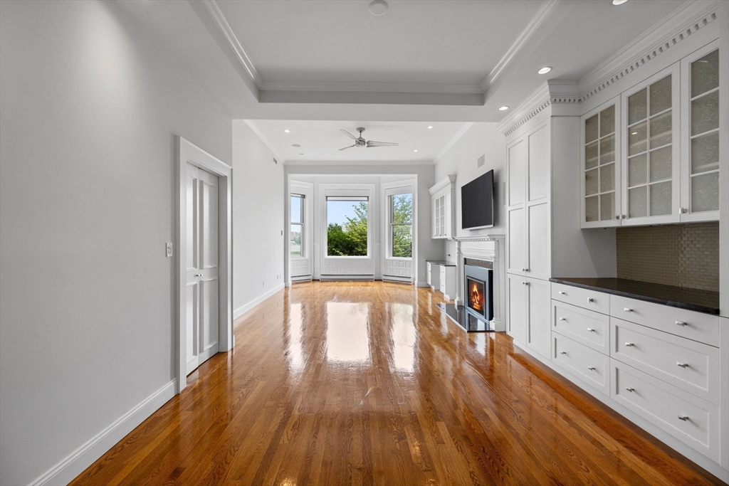 SUNNY SIDE OF BEACON | This stunning Back Bay residence is located on the parlor level of a classic brownstone on the coveted sunny side of Beacon Street. Overlooking a quiet courtyard and the Charles River and esplanade beyond, this special home features 2 bedrooms, 2 baths and a large open concept kitchen and living area with fireplace. A chef's kitchen with SubZero and Wolf appliances, custom cabinets, and other bespoke finishes are found throughout the impressive home. The primary suite has nearly 12' ceilings and a large bay window with automatic blinds, fireplace, built-ins, walk in closet and a large marble bathroom. Hardwood floors, soaring ceilings and crown molding complement this special unit. Beautiful common areas include original moldings, wood-paneling, and an elevator. Parking is included in the rent.