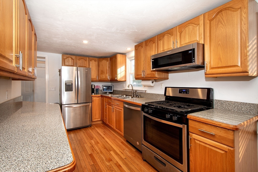 This charming ranch is in a great neighborhood and in a very convenient location. Set on an almost a 1/2 acre corner lot, this property has a fenced in back yard, perfect for cookouts, letting pets out, children playing it also includes a large side yard adding to your privacy. Feel ownership pride as you enter your new home. Your generous sized living room provides a cozy feel and is perfect to watch the Patriots games with friends. The living room flows into the eat-in kitchen with stainless steel appliances. The den is off the kitchen and could be also used as a playroom or office. It accesses the garage, front and back yards. The 3 bedrooms enjoy their own area of the house and share the full bath. The main bedroom is very generous in size. Enjoy easy access to Rt 3, commuter rail, Gray's Beach Park, schools, shopping, restaurants and more! If your looking for a move-in ready home in a great neighborhood and convenient to everything, you have found your dream home!