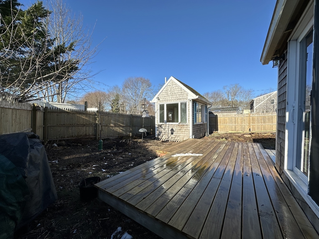 Adorable Hyannis cottage in a great location! A short walk to downtown shops/dining, Nantucket Sound beaches, and the Island Ferry terminal. This year-round home features 1 bedroom plus a sleeping loft, and there is a detached artist studio which is excellent for creative use. Recent updates include; Kitchen Cabinets and lighting, New Gas furnace, Patio decking, New Slider, Gutters with Leaf Fitter, Front Walkway and steps. Bathroom has updated vanity and new subway tile. Basement has included washer/ dryer and can be accessed from inside or outside. The home is on Town Sewer.
