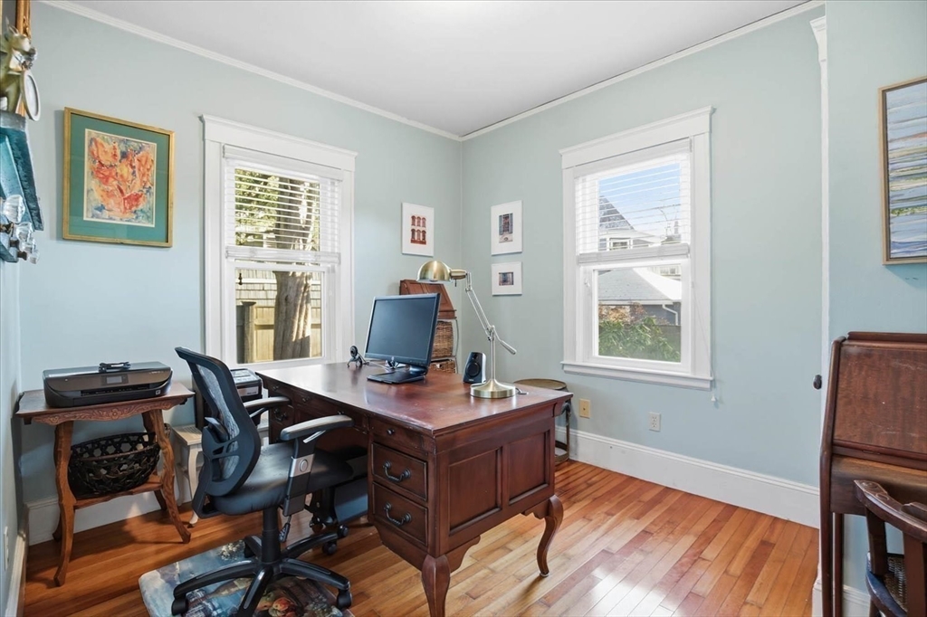 Welcome to 1 Beacon Street, a beautifully maintained 4-bedroom home nestled in one of Newburyport’s quiet, sought-after neighborhoods. Offering a flexible and thoughtful floor plan, the first floor features a spacious primary bedroom along with a second bedroom or home office, ideal for one-level living or today’s work-from-home lifestyle. The second floor includes two additional bedrooms and an office space, perfect for guests, family, or creative pursuits. Warm cherry hardwood floors run throughout the home, complemented by custom cabinetry and an updated bathroom with a beautifully renovated shower. A sun-filled slider opens to meticulously landscaped gardens, where fragrant lilacs will soon be in bloom, creating a peaceful outdoor oasis for morning coffee, entertaining, or simply unwinding. Enjoy the tranquility of this residential setting while being just minutes from downtown Newburyport, shopping, and major highways—offering the perfect blend of privacy and convenience.