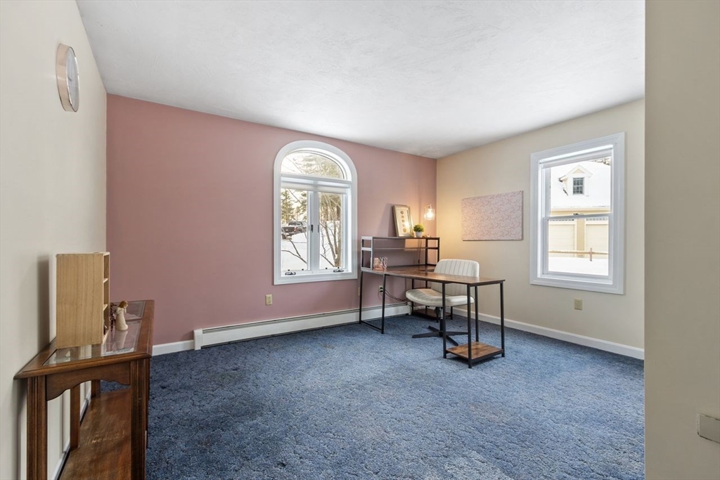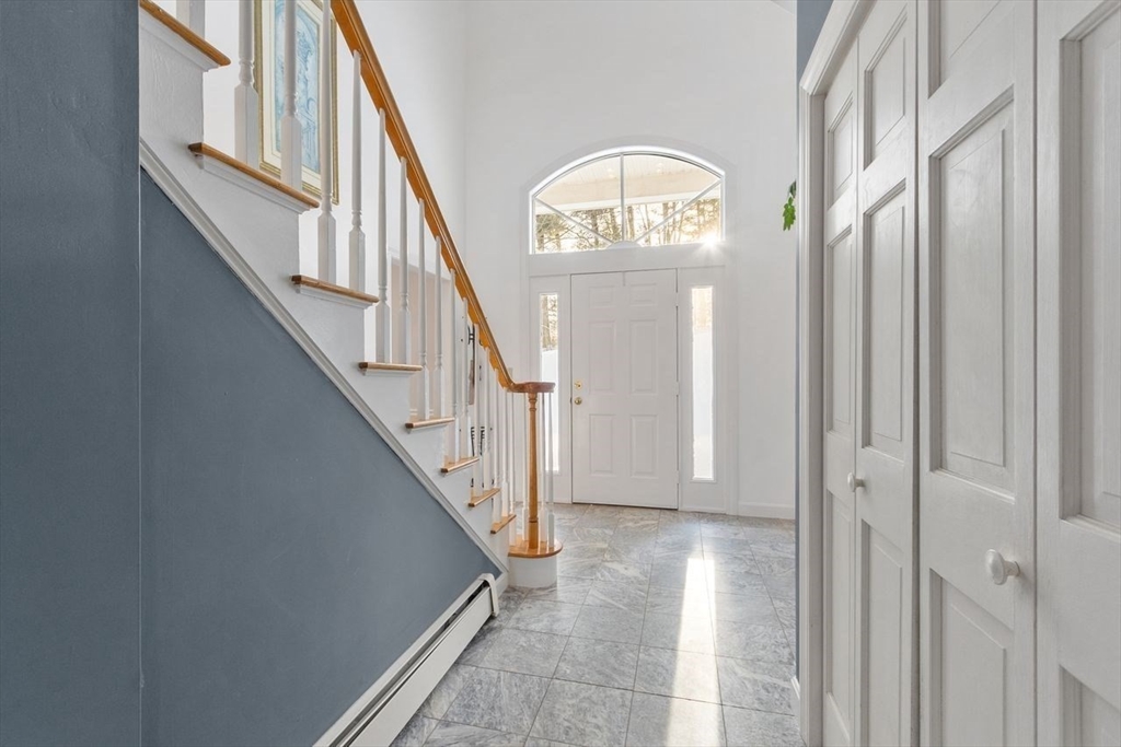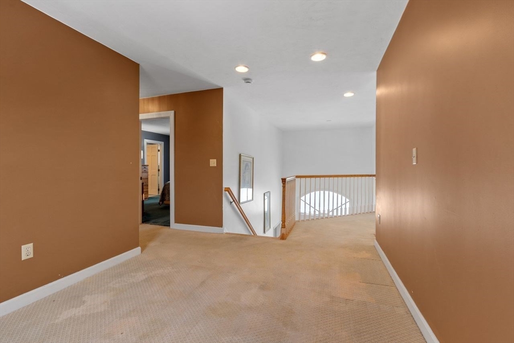 Great Colonial located on the West side. Very desirable neighborhood of comparable properties. Spacious rooms and a floor plan that will work for many scenarios. Eat-in kitchen with an island open to the formal dining room and living room which boasts a soaring ceiling open to the second level. Enjoy a fireplace and slider to the deck as well. Additional room open to the living room currently used as a bar-sitting room. Hardwood flooring in the family room, dining, and bar-sitting room. First floor laundry and a separate half bath. Second level offers a primary suite with a walk-in closet and full bath. Two additional bedrooms, full bath and second story landing area that can be used as office space or a sitting area. Extra space in the lower level finished walkout offering two separate rooms. New "owned" solar panels (2025) new roof (2023) Heating (2014). Minutes to Route 2, close to the Train station and Wachusett Mountain. Great opportunity to make this home your own!