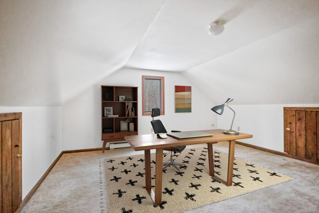 Location, location, location! This prime property is situated in the highly desirable Canterbury Forest neighborhood, a quiet cul-de-sac community primarily consisting of single-family homes. Set back from the road, this condex offers exceptional privacy. The home features 5 rooms, including 2 bedrooms, 1.5 baths, and a finished third-floor space. The newer eat-in kitchen boasts quartz countertops, tile backsplash, hardwood flooring, pantry storage, and newer appliances, with direct access to a 12x13 deck—perfect for outdoor dining & relaxation. A spacious, sun-filled living room showcases hardwood flooring, while a newer half bath completes the first floor. The second level offers two generously sized bedrooms with ample closet space and a full bath with hardwood flooring. The finished third floor provides flexible space ideal for a home office, den, primary bedroom extension, or additional storage. The lower level includes a one-car garage under, walk-out basement, w/d & storage.
