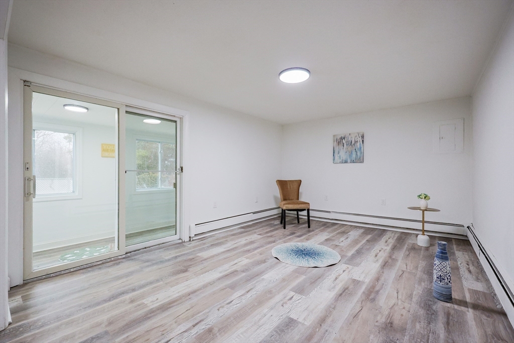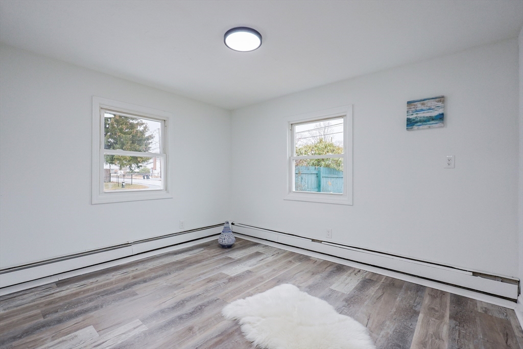 Renovated four-bedroom ranch located on a corner lot in a desirable single-family residential neighborhood. This home features luxury vinyl plank flooring throughout and has newer replacement windows, enhancing both aesthetic appeal and energy efficiency. The open-concept layout includes a spacious living room that flows seamlessly into the kitchen and family/dining area. Enjoy additional living space in the three-season porch, which leads to a fenced-in backyard, perfect for outdoor gatherings. The low-maintenance vinyl siding adds to the home's convenience. The kitchen is equipped with stainless steel appliances, granite countertops, and ample cherry cabinetry, providing plenty of storage and a bright, inviting atmosphere filled with natural sunlight.