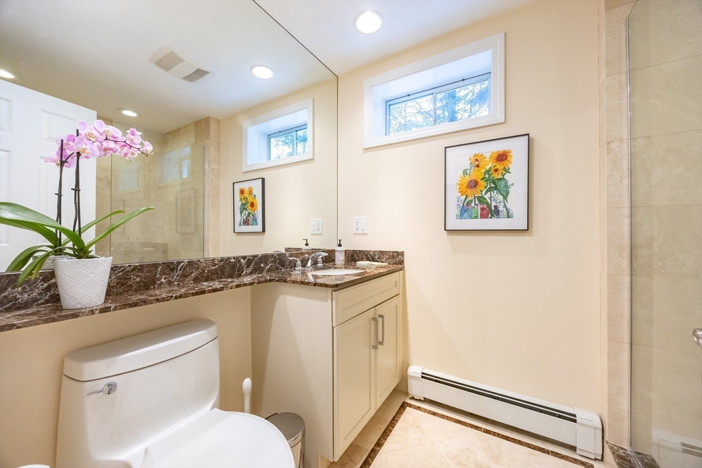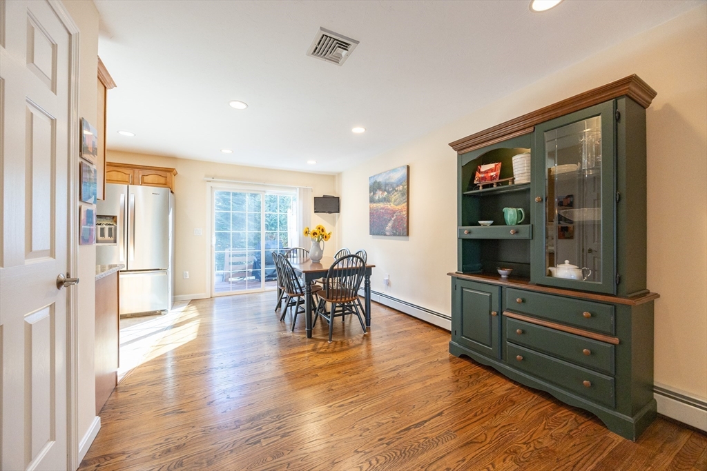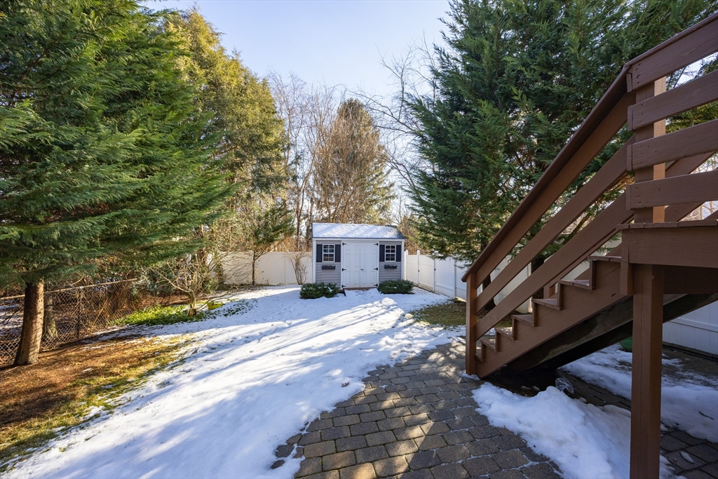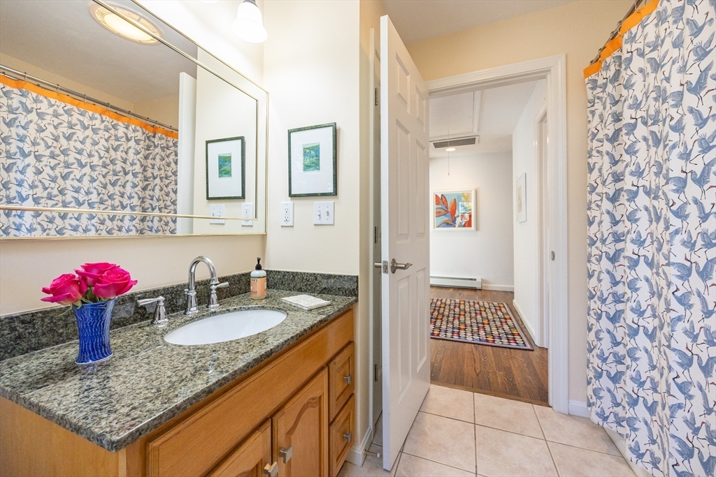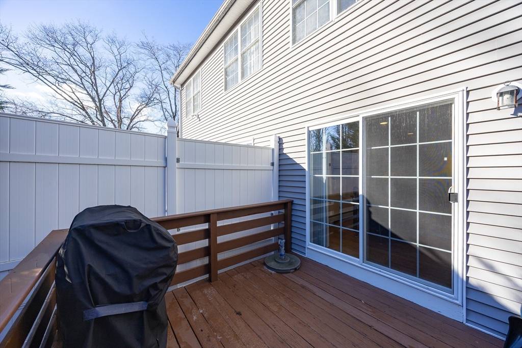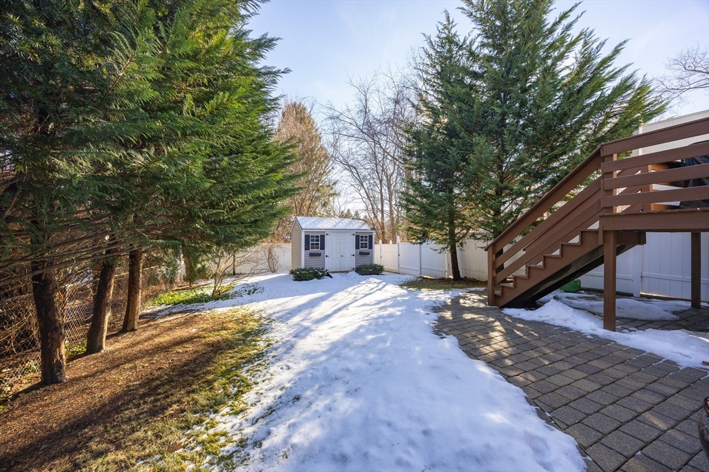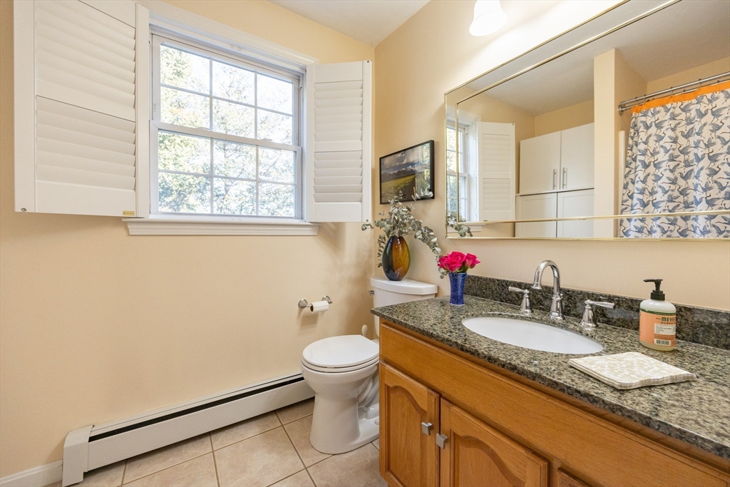 Meticulously maintained half-duplex condo offering true move-in readiness! This spacious home features 3 bedrooms, including a comfortable primary bedroom with convenient Jack-and-Jill bath access. The first level boasts an inviting open floor plan with pristine hardwood floors throughout, recessed lighting, and a stylish kitchen with granite counters and stainless steel appliances. A main-level half bath adds everyday convenience. Closet space is abundant throughout the home. The fully finished basement provides great bonus living space and includes a beautiful full stand-up tiled shower. Enjoy Central Air, wooden shutters that will remain, and outdoor living with a back deck and patio overlooking a private, fenced-in backyard. A quality Reeds Ferry shed offers additional storage. This home blends comfort, functionality, and pride of ownership—nothing to do but move in and enjoy!