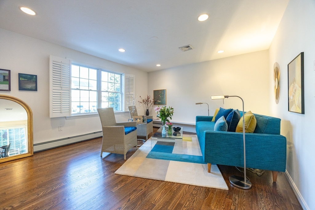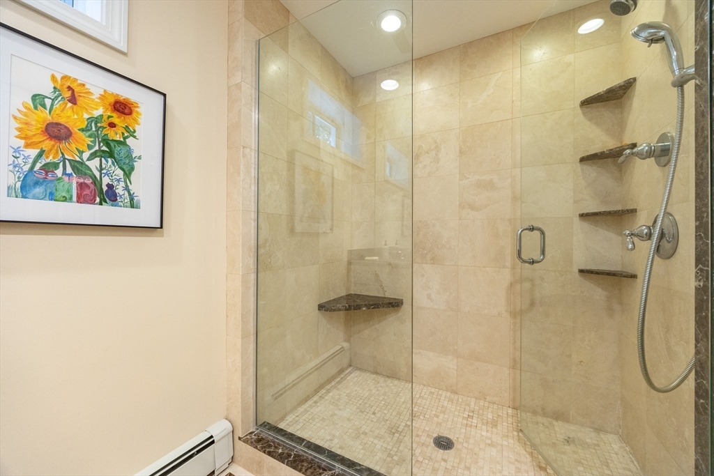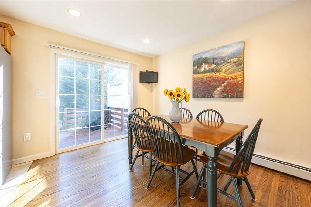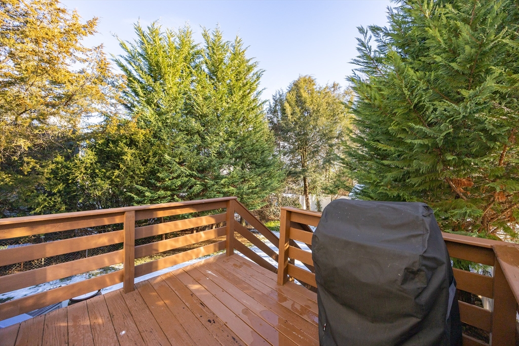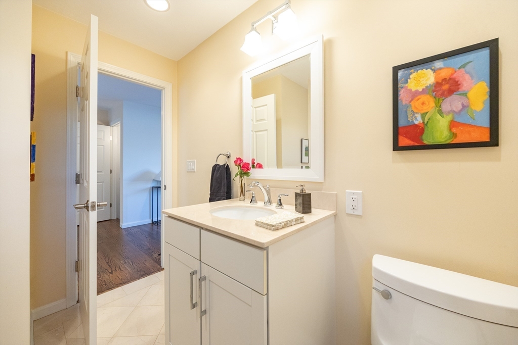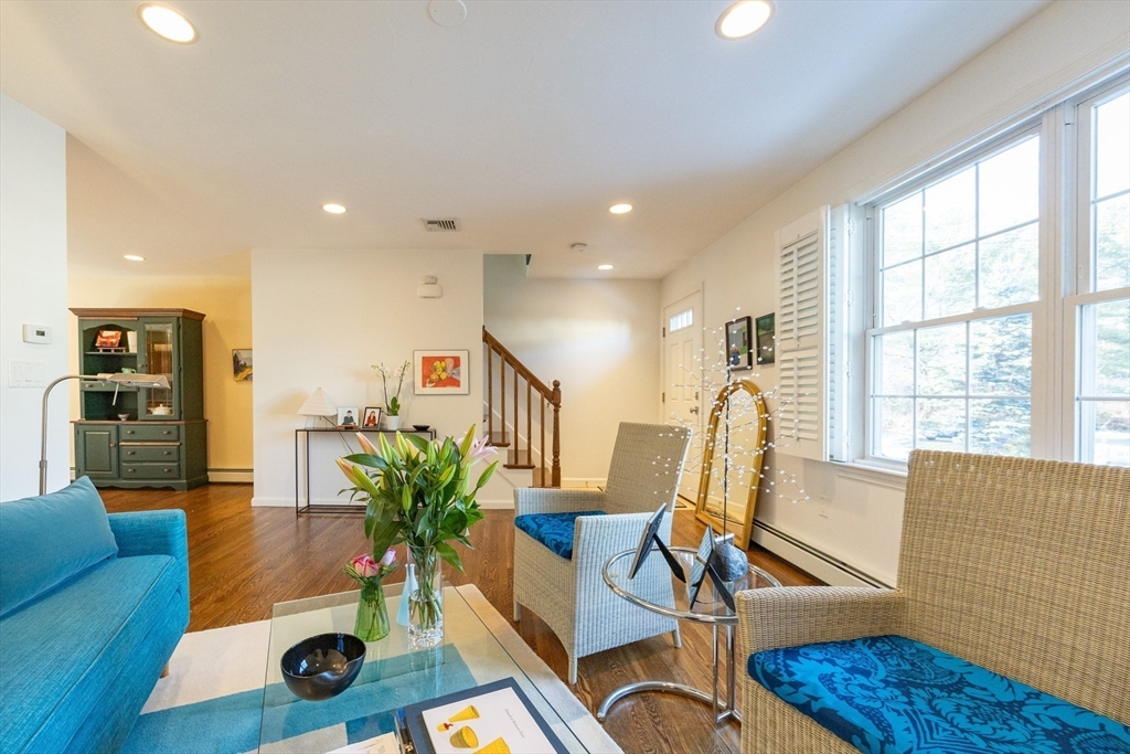 Meticulously maintained half-duplex condo offering true move-in readiness! This spacious home features 3 bedrooms, including a comfortable primary bedroom with convenient Jack-and-Jill bath access. The first level boasts an inviting open floor plan with pristine hardwood floors throughout, recessed lighting, and a stylish kitchen with granite counters and stainless steel appliances. A main-level half bath adds everyday convenience. Closet space is abundant throughout the home. The fully finished basement provides great bonus living space and includes a beautiful full stand-up tiled shower. Enjoy Central Air, wooden shutters that will remain, and outdoor living with a back deck and patio overlooking a private, fenced-in backyard. A quality Reeds Ferry shed offers additional storage. This home blends comfort, functionality, and pride of ownership—nothing to do but move in and enjoy!
