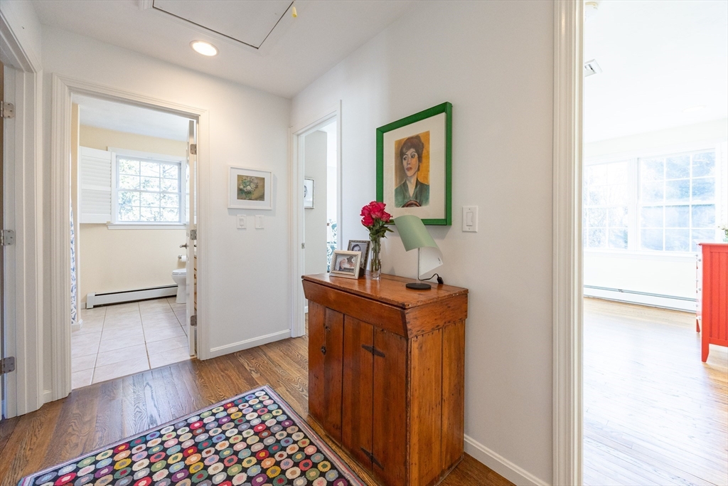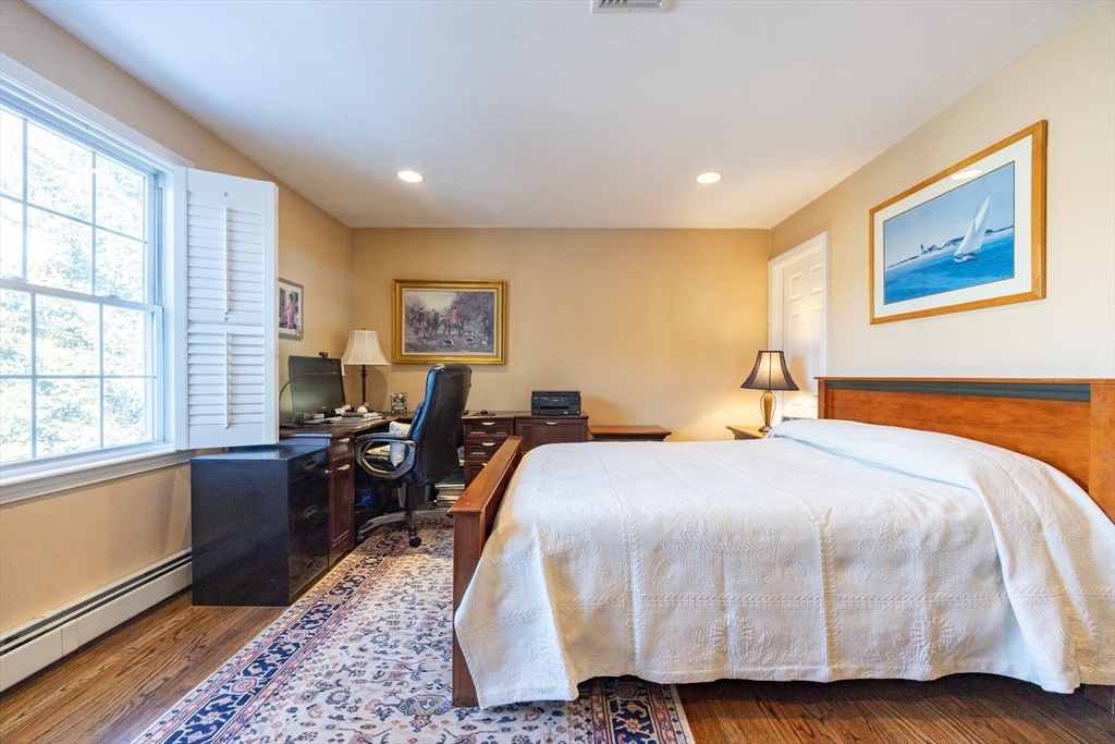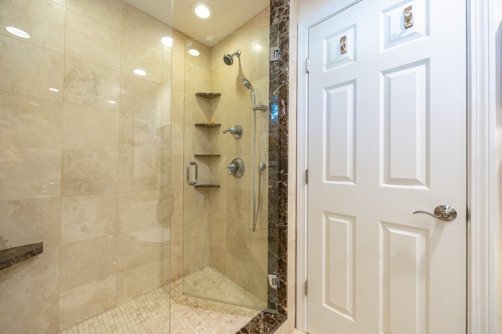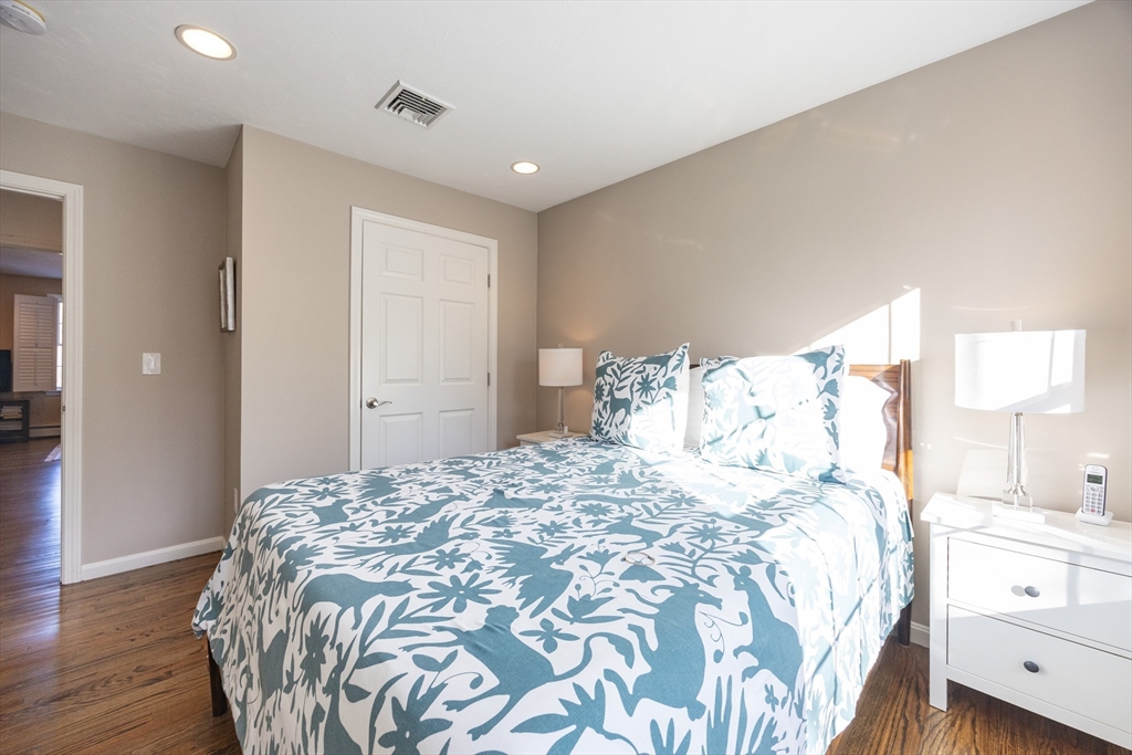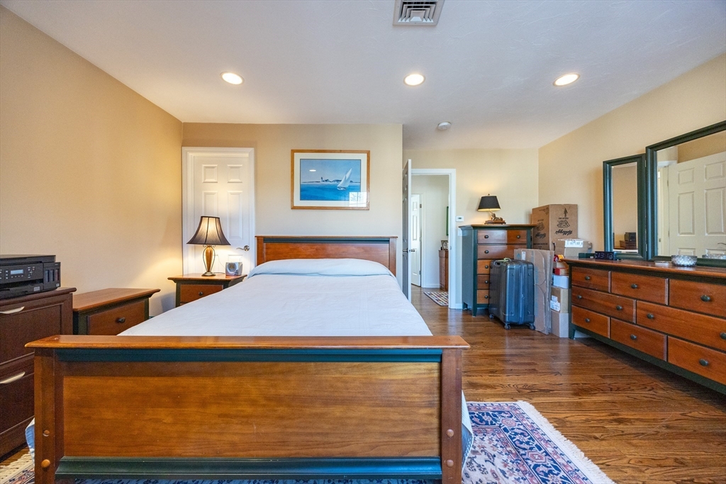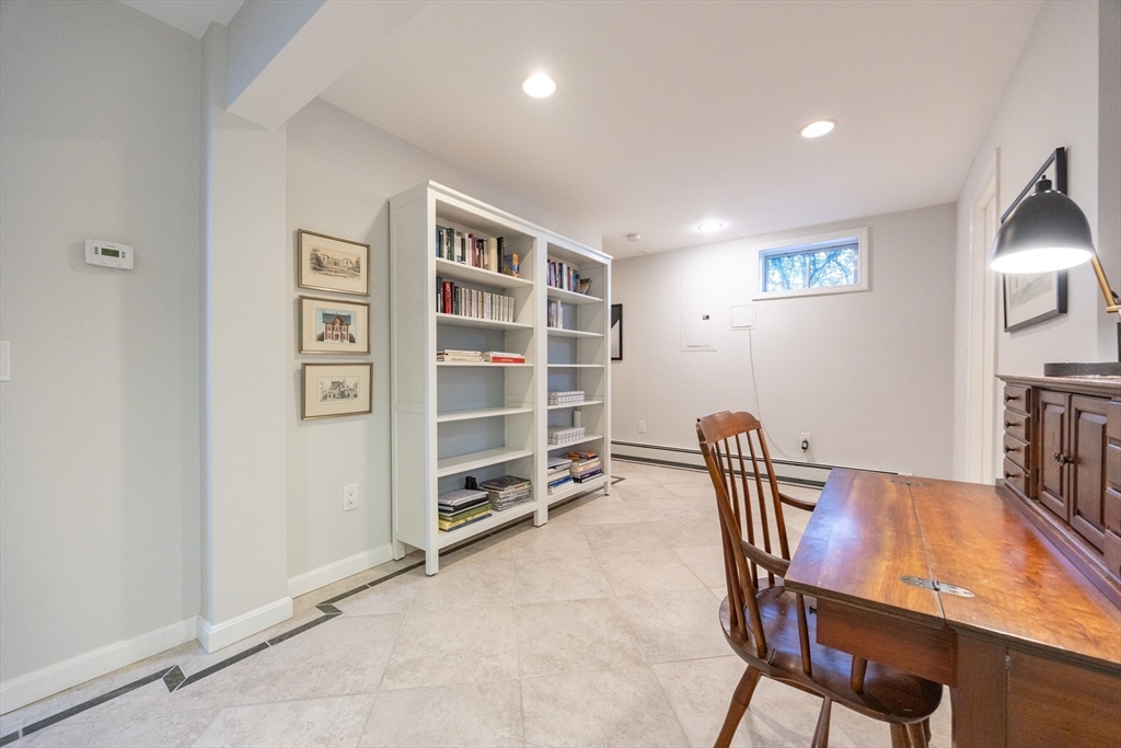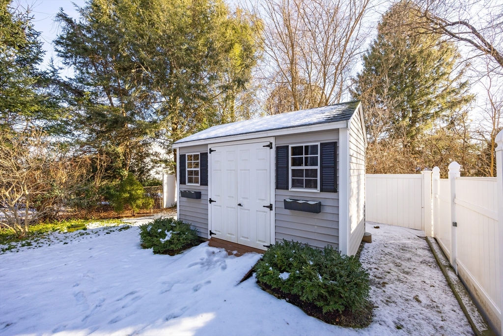 Meticulously maintained half-duplex condo offering true move-in readiness! This spacious home features 3 bedrooms, including a comfortable primary bedroom with convenient Jack-and-Jill bath access. The first level boasts an inviting open floor plan with pristine hardwood floors throughout, recessed lighting, and a stylish kitchen with granite counters and stainless steel appliances. A main-level half bath adds everyday convenience. Closet space is abundant throughout the home. The fully finished basement provides great bonus living space and includes a beautiful full stand-up tiled shower. Enjoy Central Air, wooden shutters that will remain, and outdoor living with a back deck and patio overlooking a private, fenced-in backyard. A quality Reeds Ferry shed offers additional storage. This home blends comfort, functionality, and pride of ownership—nothing to do but move in and enjoy!