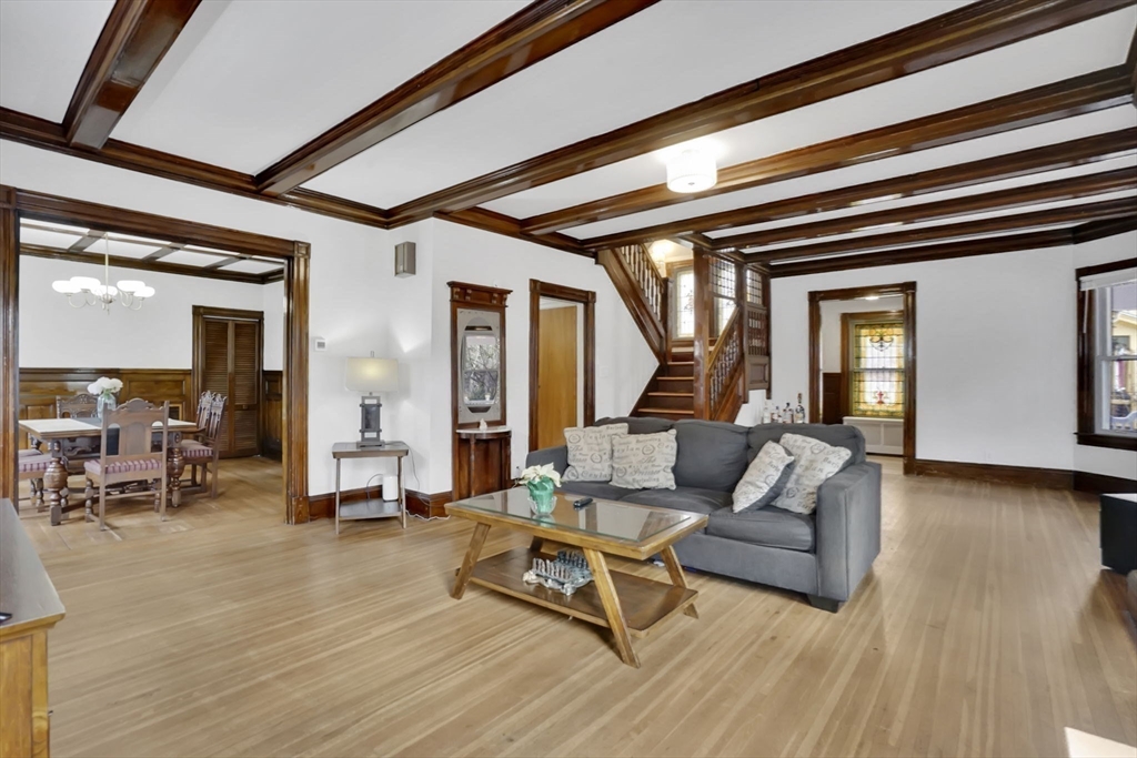 Looking to own in the Historic District in Forest Park? Love the Old World Charm, Character & Beauty, this is it! Enter into the warm foyer & into the beautiful spacious living rm which features wood beams, originality & decorative molding w/ lots of natural light. Continue into the dining rm boasting fabulous wainscotting & pantry w/ a pass thru to kitchen offering all appliances & a pretty backsplash. Second flr features a fabulous primary bedroom w/ sitting room or nursery, two additional bdrms & full bth. Third flr offers two additional bdrms & full bth. Wonderful addition off the bk of the home w/ two private entrances - opportunity for multi-generational living, office space or potential rental income or home business. Seller states upgrades incl: Hot Water Tank(2025), 200 amp panel, Utica Boiler(2013), freshly painted interior, re-carpeting throughout addition. Offering timeless charm, generous space, and exceptional city convenience. Expect to be impressed!