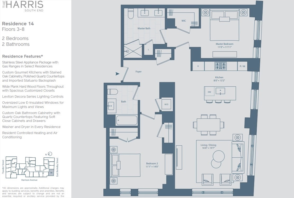 This spacious two-bedroom, two-bathroom apartment features a large living room and stunning southwest-facing windows that fill the space with natural light. Enjoy the convenience of on-site parking and premium amenities, including an Equinox-inspired gym and an indoor lap pool. Don’t miss out on this exceptional opportunity! The Harris sets a new standard for sophisticated urban living, where thoughtfully designed residences meet a curated suite of world-class amenities. Elevate your lifestyle on the landscaped roof terrace with grills, fire pits, and dining areas, or maintain your wellness routine in the 8,000-square-foot fitness center, complete with an indoor lap pool, bouldering wall, half basketball and squash courts, and state-of-the-art fitness studios. On-site parking is available for $450 per month. The optional amenity package fee is $85 per month. Photos are of a model unit. Layout and finishes may vary.