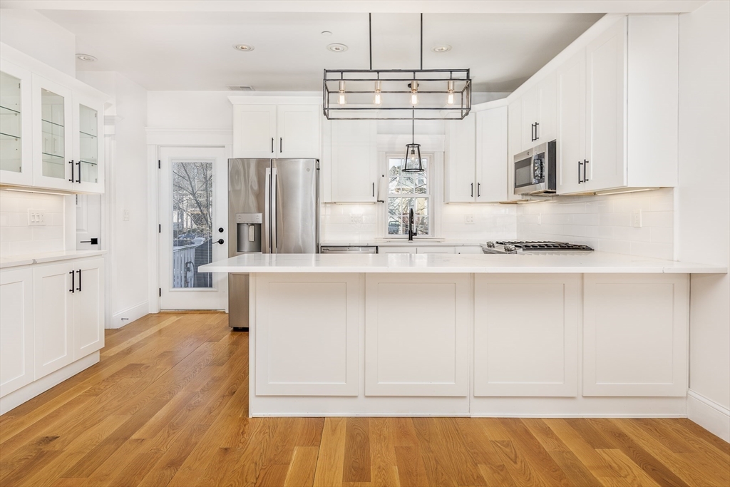 Spectacular townhouse offers modern living in vibrant Salem. This beautifully designed home features 3 bedrooms and 2.5 bathrooms, hardwood floors throughout, and parking. The gorgeous kitchen is a true standout with amazing counter space and seating, perfect for those who love to cook or entertain. Step right off the kitchen to the back deck, ideal for grilling and outdoor enjoyment. The bright and sunny living room features a gas fireplace and gorgeous coffered ceilings, creating a warm and inviting space. The second floor offers two well-sized bedrooms with great closet space, a full bathroom with tiled tub/shower, and convenient second-floor laundry. The primary suite includes an incredible walk-in closet with custom drawers and shelving, along with a spa-like bathroom featuring an oversized tiled shower and striking double vanity. Gorgeous lighting fixtures throughout add a true sense of luxury. Just minutes to the Commuter Rail, Salem’s restaurants, shops, and historic charm.