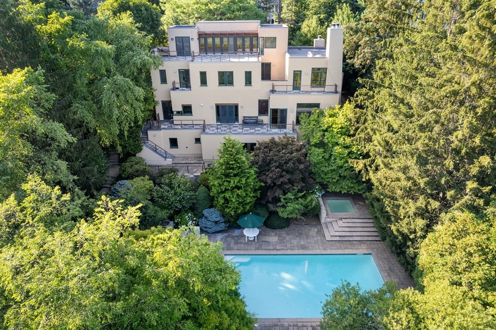 A charming and special home in the heart of Newton! This property is full of natural light, offers a perfect blend of classic charm and modern convenience in a in an extremely private setting. Custom warren schwartz designed Santa Fe home majesticaly sited on over an acre of private grounds. SWIMMING POOL & TENNIS COURT are the highlights. Main level has a dramatic great room that seamlessly integrates with the oversized deck perfect for entertaining. The first floor has an oversized dining room with a wall of windows,a mid-century styled kitchen, office space and direct entry to 2 car garage and a powder room. On the second floor there is a glorious primary suite with a private deck, dressing room and en suite bathroom plus laundry, 3 more ample bedrooms and one full bathroom.The fully finished walkout lower level includes another bedroom, full bathroom, rec room, home gym.Walkout on to a private terrace overlooking beautifully landscaped greenery'Available for short term Rental too.